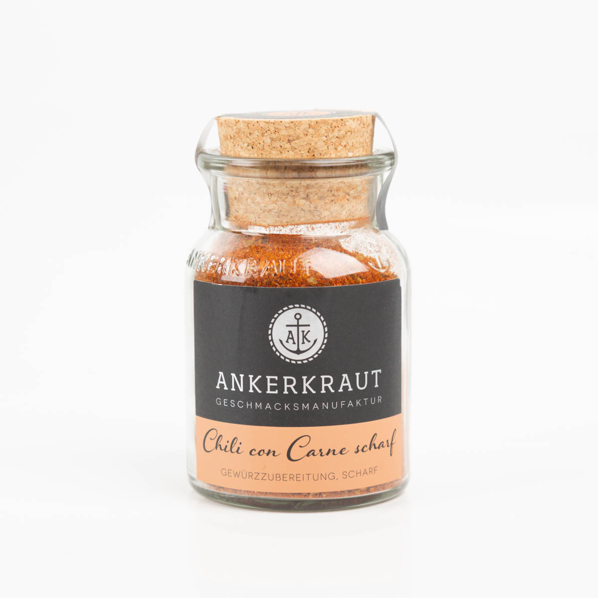 Chili con Carne scharf – Gewürzmischung im Glas 80 g mit Korkdeckel (Ankerkraut)