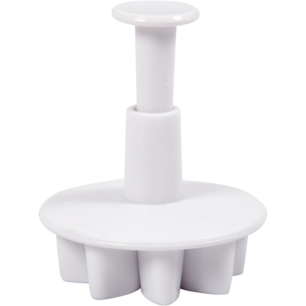 Teig/Masse ausrollen, Ausstecher aufsetzen, einmal drücken (ausstechen) und anschließend Stempel betätigen – schon lösen sich die Blüten mit eingeprägtem Detail.