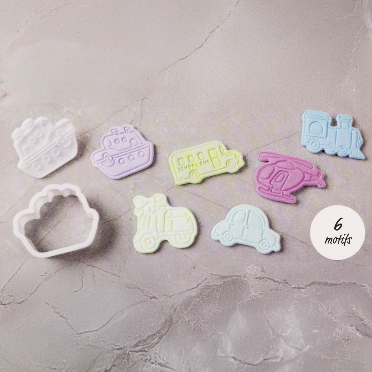 6 Ausstecher mit Stempelgriff (Fahrzeuge) im Set