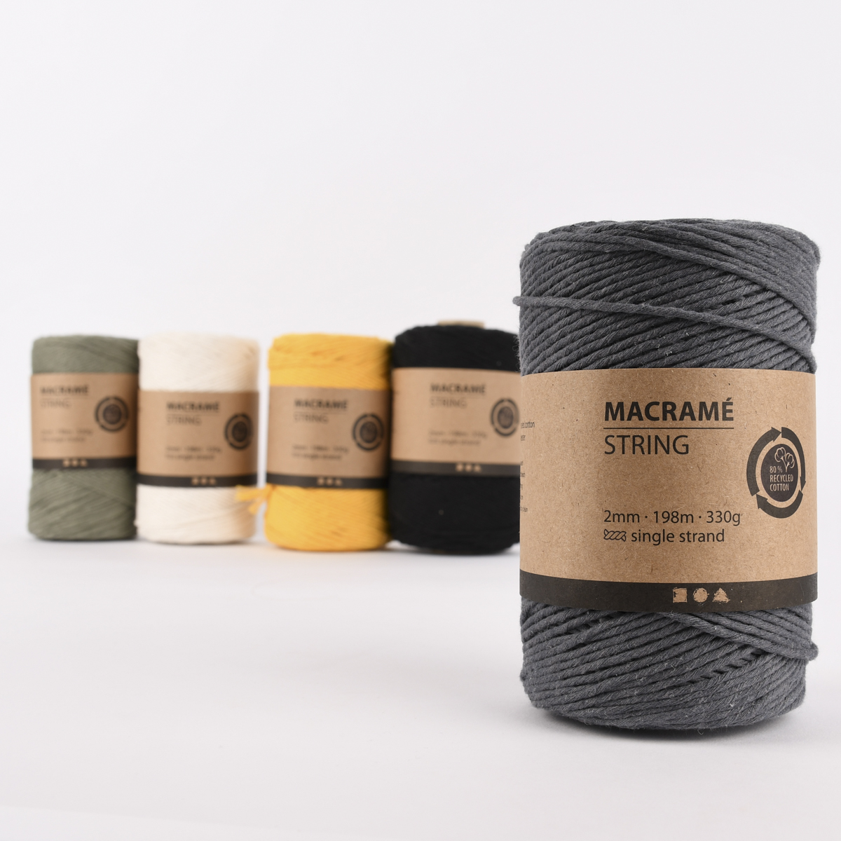 Die Makramee Kordel aus 80% recycelter Baumwolle und 20% Polyester ist das optimale Garn für Makramee-Ideen aller Art.