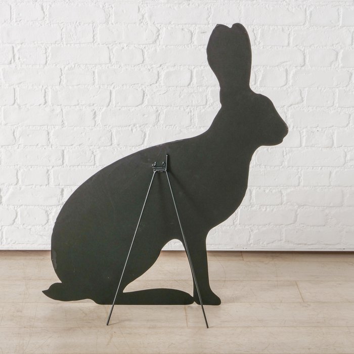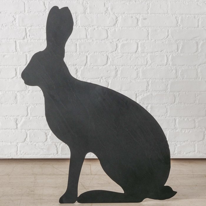 Gefertigt ist der Aufsteller aus Eisen und mit einer pulverbeschichteten Oberfläche versehen. Das sorgt für eine matte Optik in Schwarz und unterstreicht den modernen Charakter der Dekoration. Gleichzeitig wirkt das Material stabil und hochwertig. Der Metallständer auf der Rückseite ermöglicht einen sicheren Stand, sodass du den Hasen flexibel aufstellen kannst.