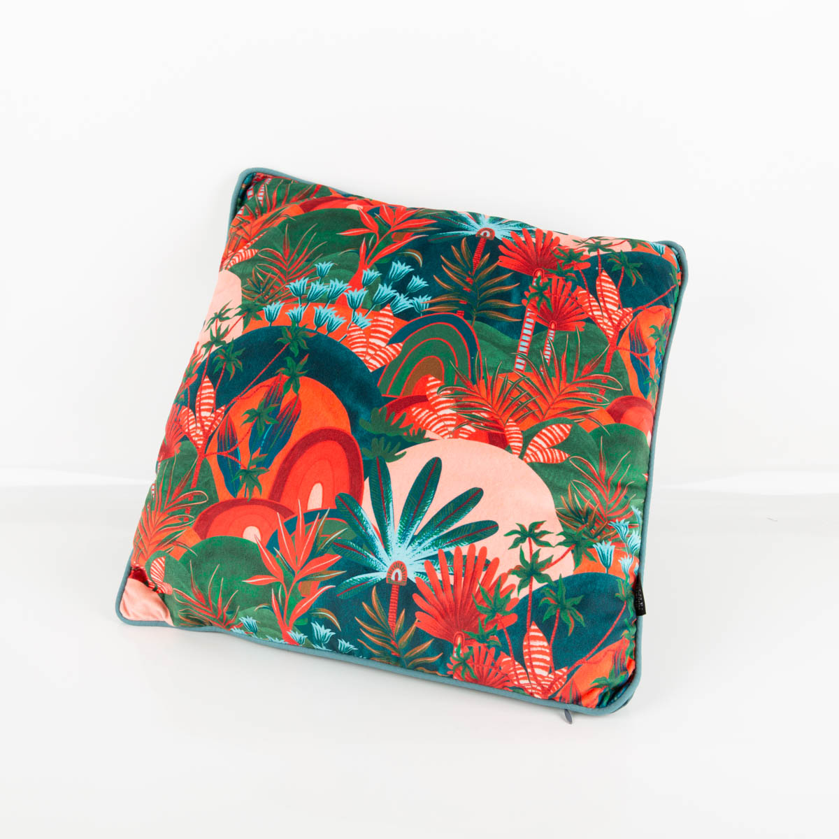Kissen Morelia Samt mit Kederumrandung – Exotisches Dekokissen 45x45 cm in Orange-Grün