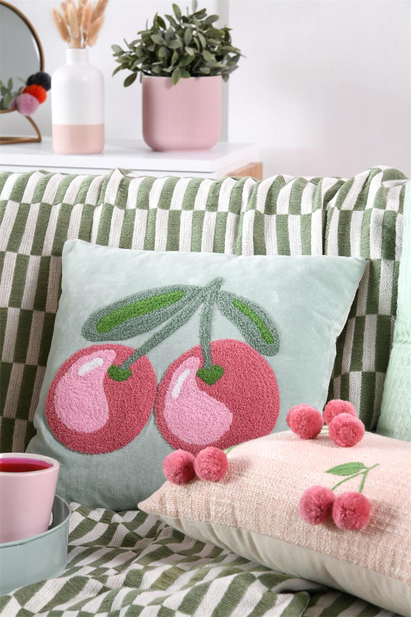 Kissen mit verspieltem Kirschmotiv – getuftet für tolle Struktur und Haptik
