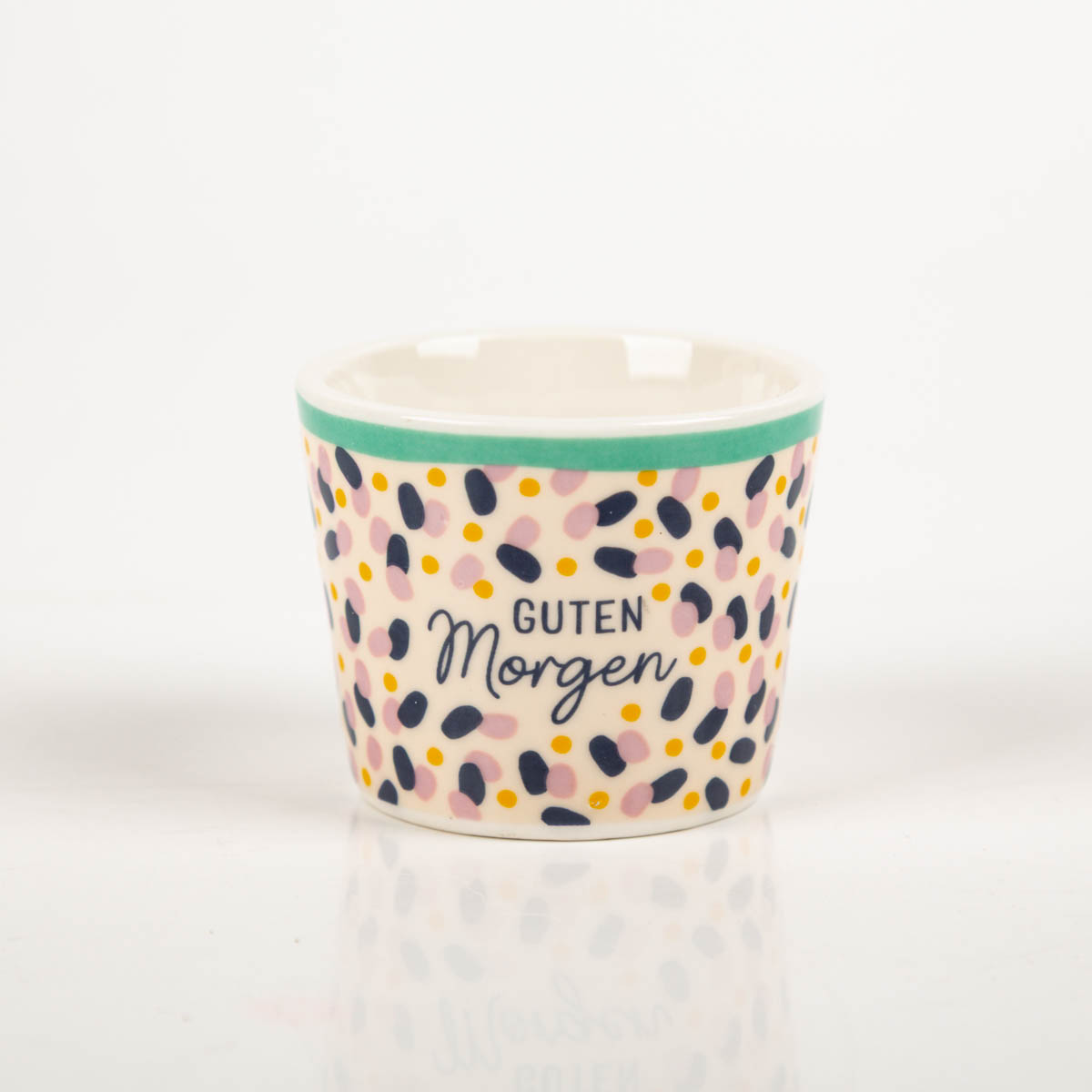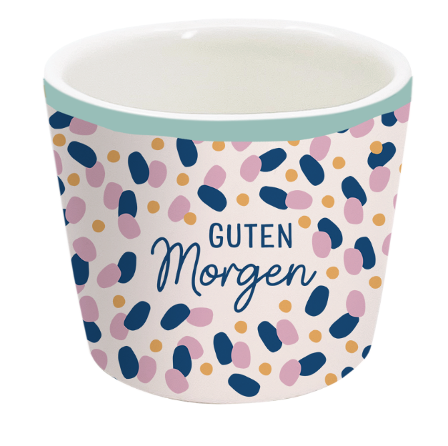 FREUNDLICHER START: Eierbecher mit Schriftzug „Guten Morgen“ und buntem Muster – macht dein Frühstücksei zum Hingucker