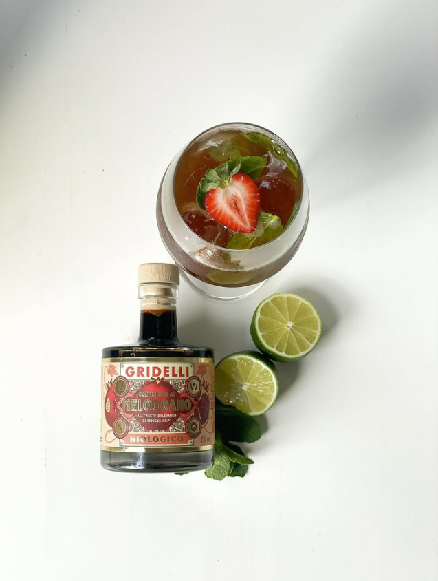Der Bio Condimento Melograno von Gridelli vereint italienische Balsamico-Tradition mit der intensiven Fruchtigkeit von Granatapfel. Hergestellt aus I.G.P.-zertifiziertem Aceto Balsamico di Modena und verfeinert mit Bio-Granatapfelsaft entsteht ein aromatisches Premiumprodukt mit harmonischem Spiel aus Süße und Säure.