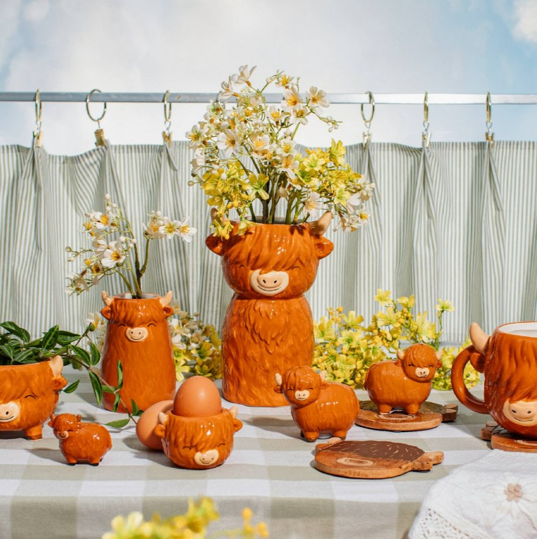 Zwei fröhliche Highland-Cows als Salz- und Pfefferstreuer bringen landhausige Gemütlichkeit auf deinen Tisch. Handlich, glasiert, nachfüllbar – perfekt als Geschenk und Deko.