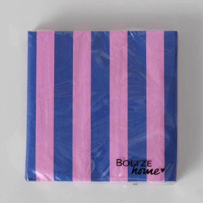 Servietten sind ein Muss bei jeder Festlichkeit. Diese mit dem Streifen in Kontrastfarben sorgen für einen farbigen Eyecatcher in deiner Tischdeko. Du kannst zwischen der Farbkombi pink-orange und pink-dunkelblau wählen.