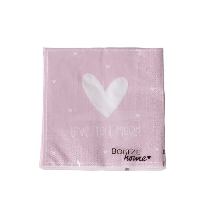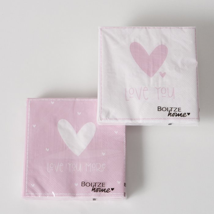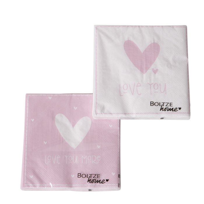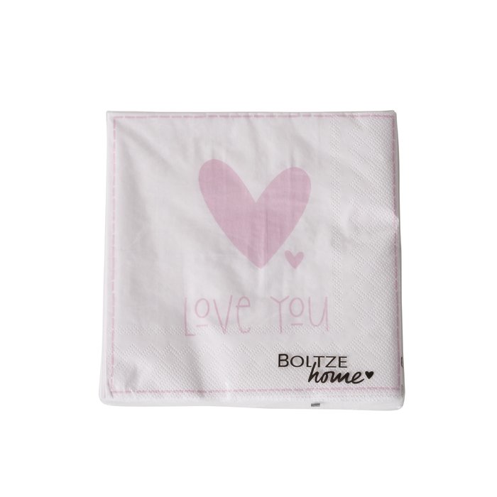 Du planst eine liebevoll gedeckte Tafel? Mit den „Love You“ Servietten von Boltze bringst du im Handumdrehen Herzmomente auf deinen Tisch. Die 3-lagigen Papierservietten sind angenehm weich, formstabil beim Falten und ideal für Brunch, Geburtstag, Hochzeit oder Valentinstag. Das zarte Herz-Design in Rosa wirkt modern und passt zu weißem Geschirr ebenso wie zu Naturmaterialien.