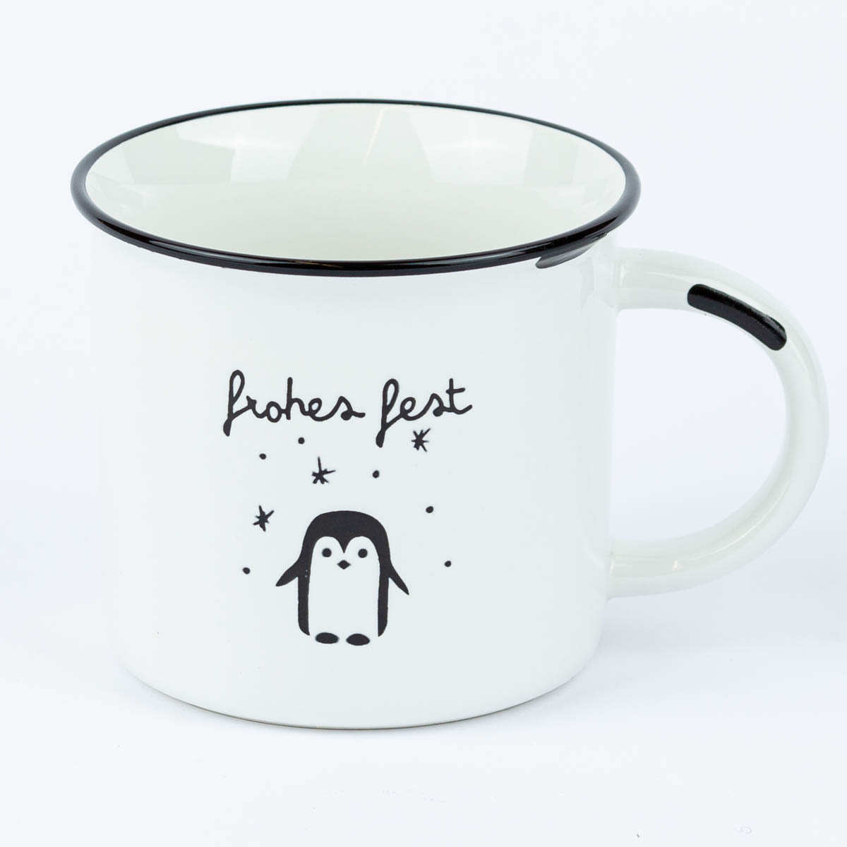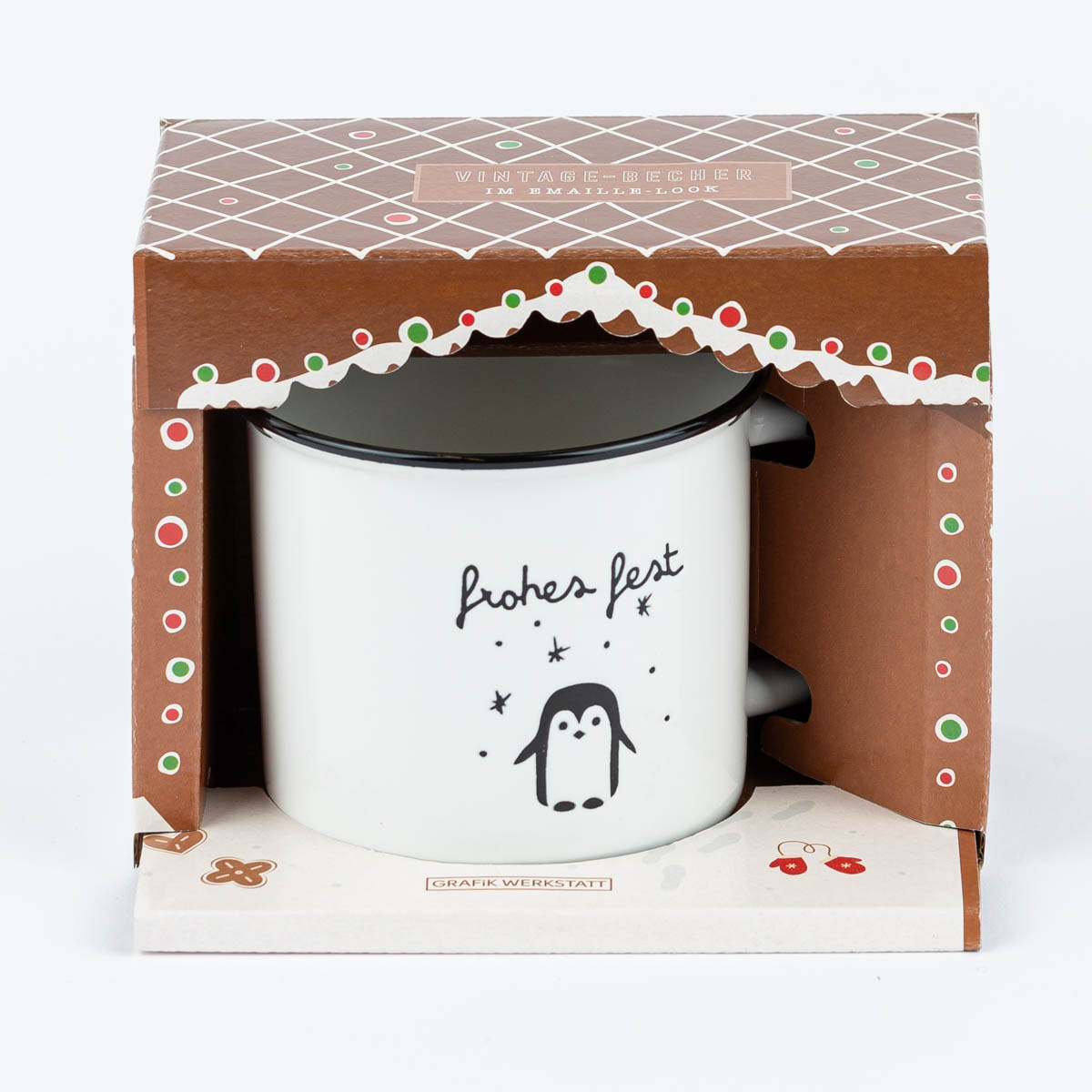 Grafik Werkstatt Tasse Vintage Weihnachten Frohes Fest Pinguin weiß schwarz 400ml