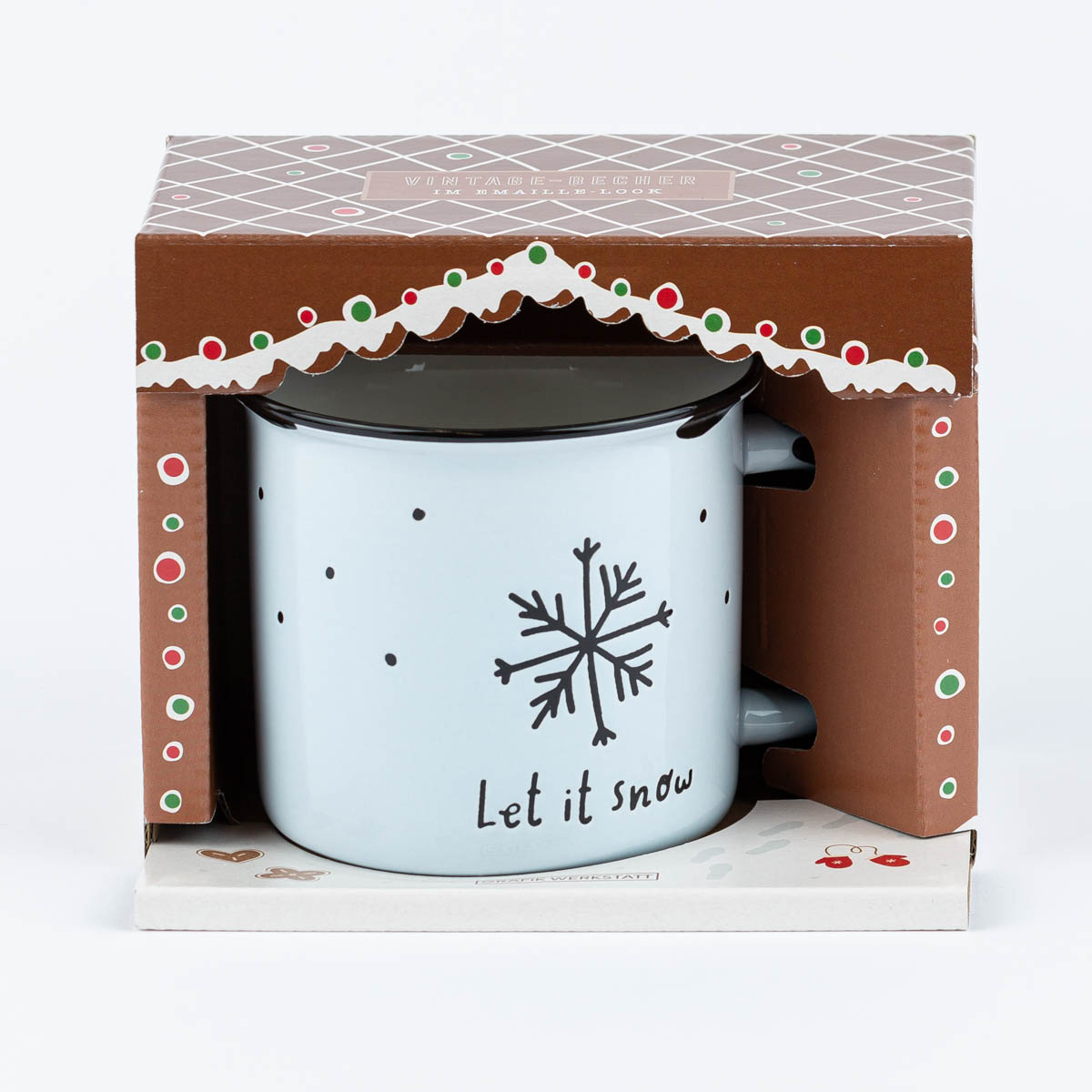 Grafik Werkstatt Tasse Vintage Weihnachten Let it snow hellblau schwarz 400ml