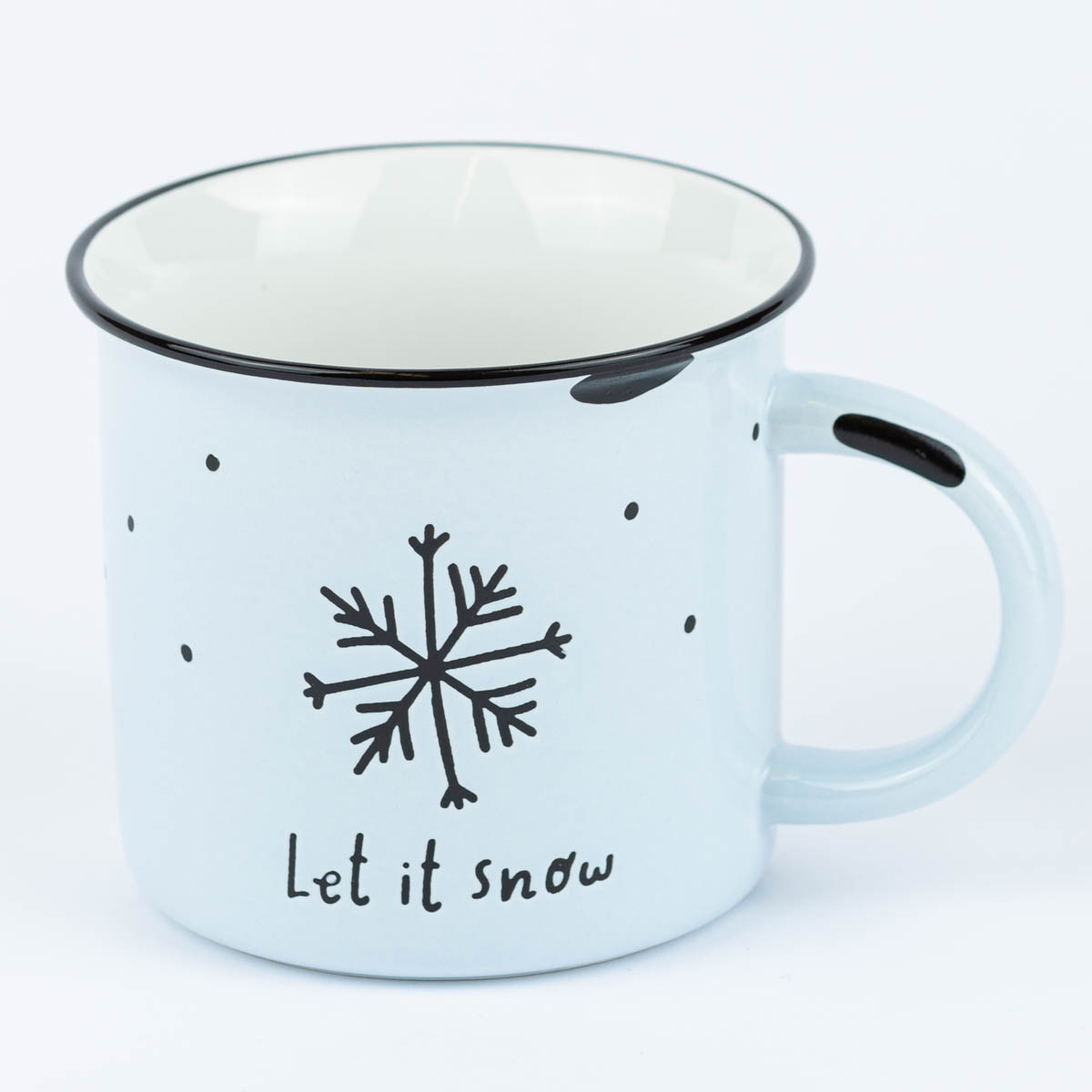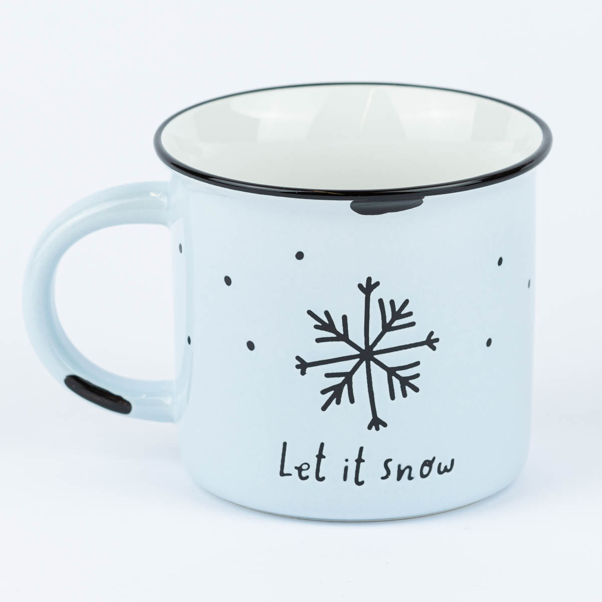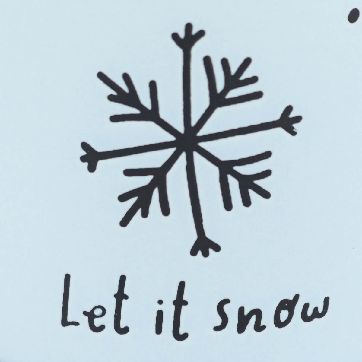 Die Weihnachtstasse bringt den Weihnachtszauber direkt zu dir nach Hause. Das hellblaue Design kombiniert mit der schwarzen Schrift "Let it snow" versprüht eine fröhliche und festliche Atmosphäre. Genieße deine Lieblingsheißgetränke an kalten Tagen und lass dich von der Magie des Schneefalls verzaubern.
