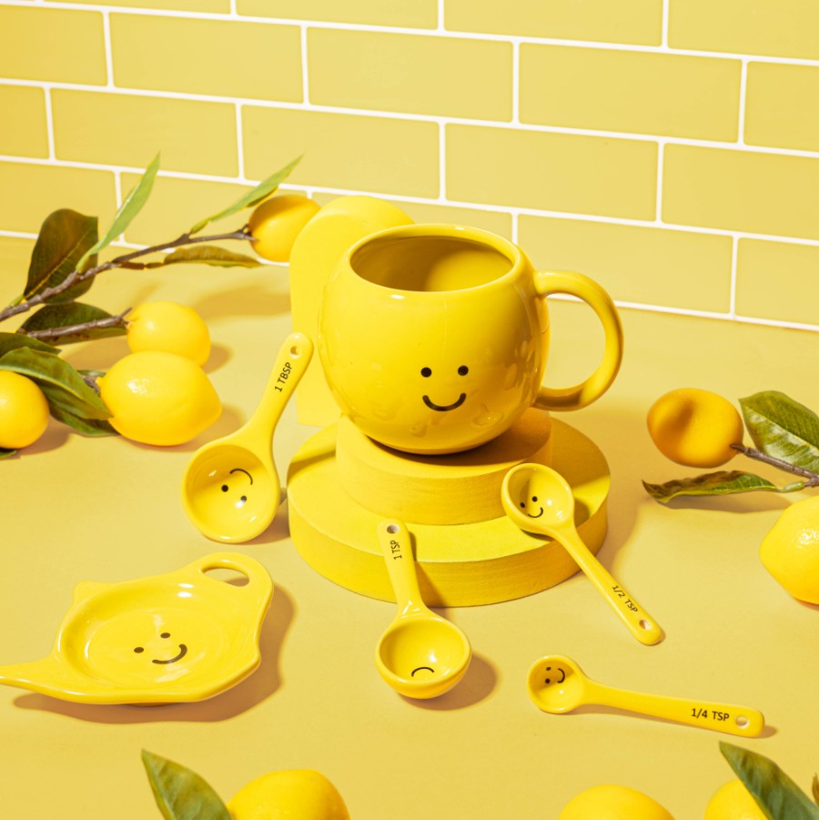 Diese fröhliche Happy Mug in sonnigem Gelb macht dir schon beim ersten Blick gute Laune. Handbemalt, angenehm griffig und perfekt für Kaffee, Tee oder heiße Schokolade – ideal für dein Zuhause im Dopamine-Décor-Trend.