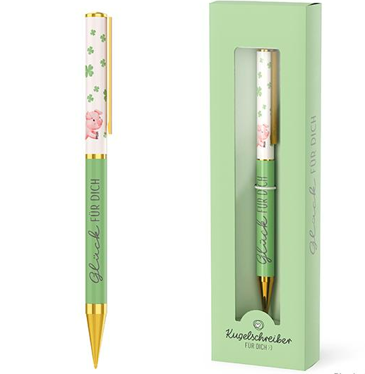 Kugelschreiber „Glück für dich“ – mit Glücksschweinchen in grün und weiß