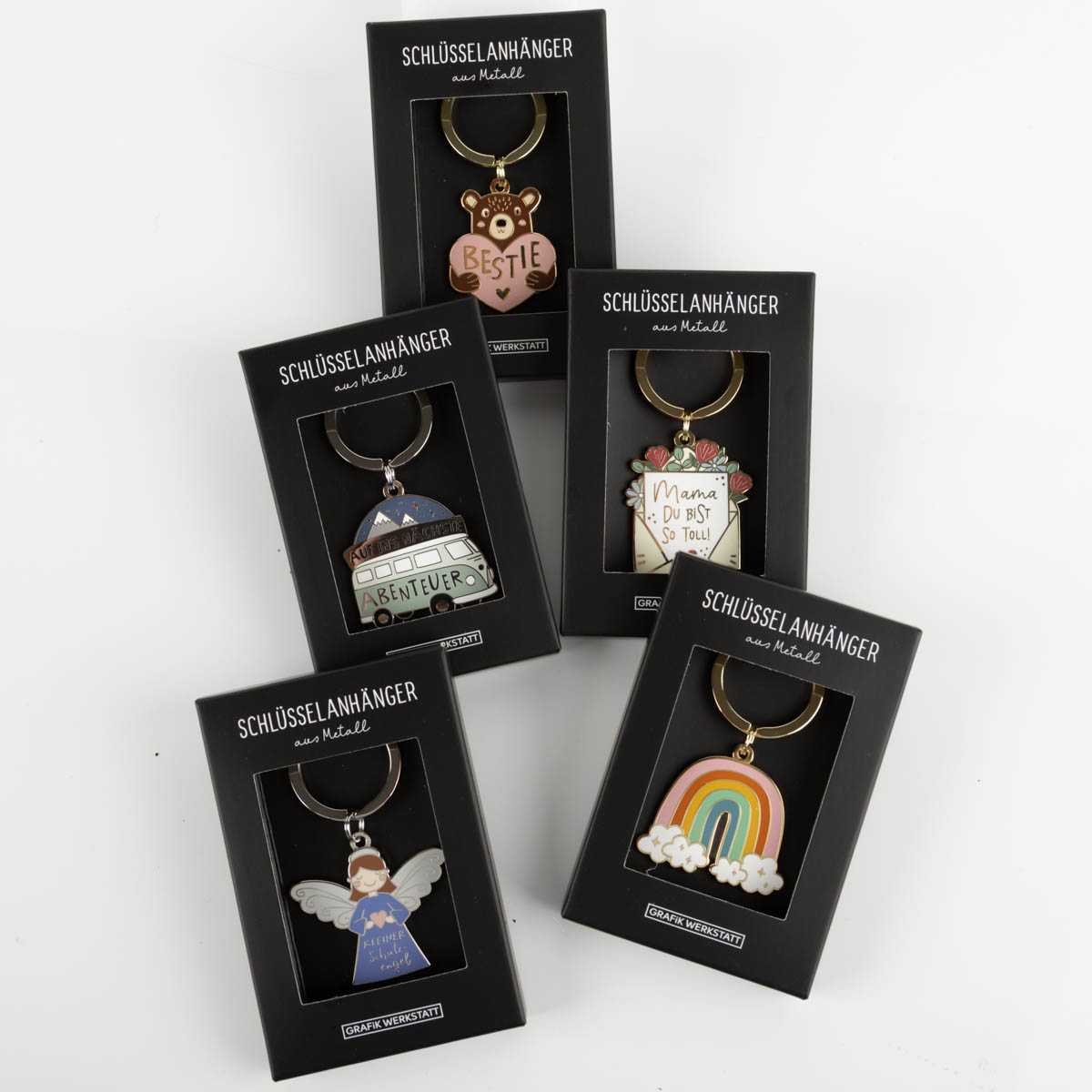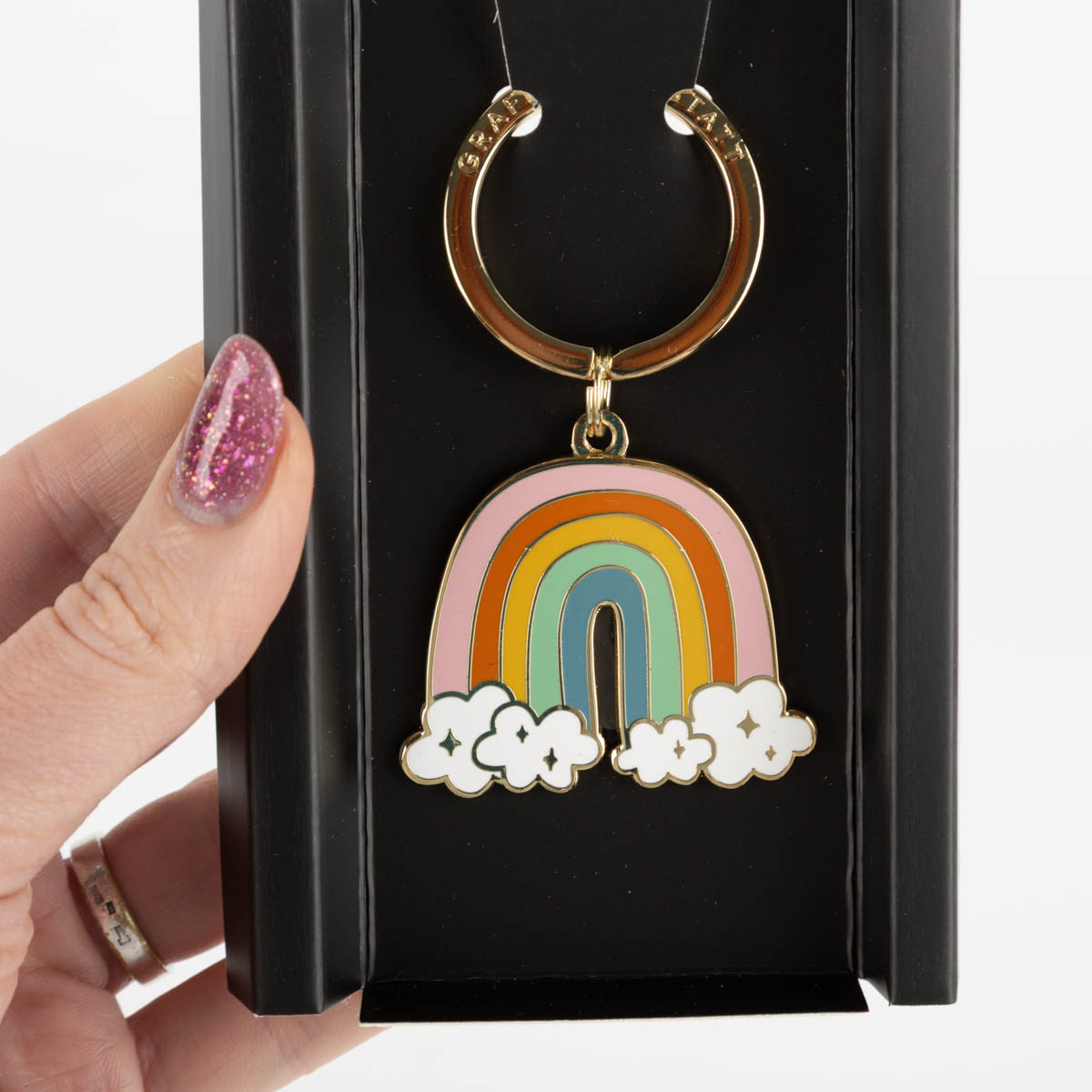 • Hochwertiger Metall-Schlüsselanhänger mit farbenfrohem Regenbogen-Motiv
