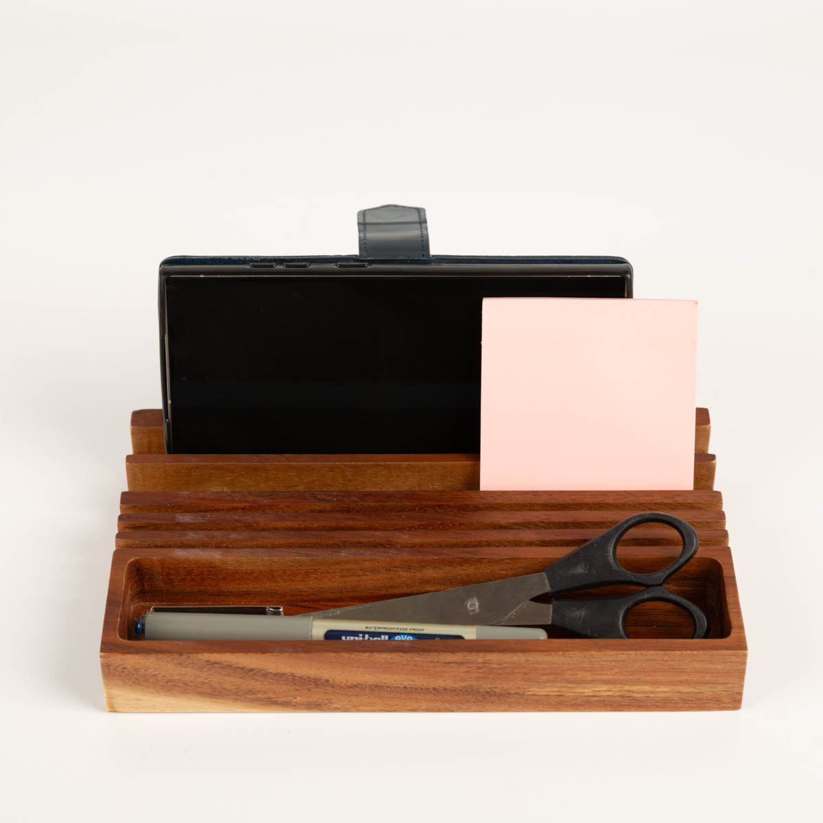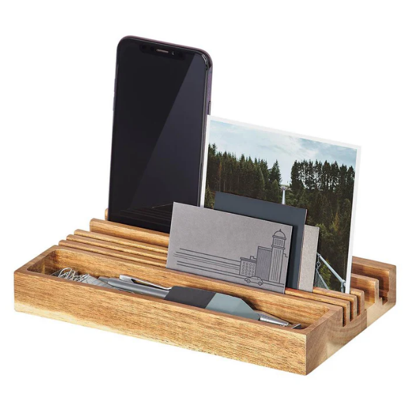Schreibtischorganizer aus massivem Akazienholz mit natürlicher Maserung