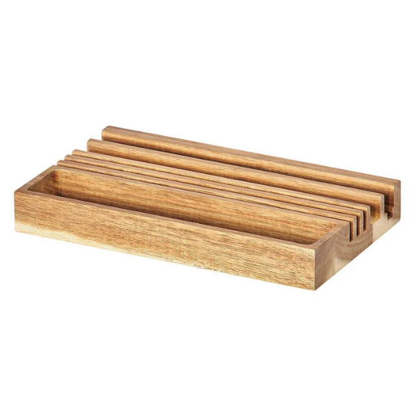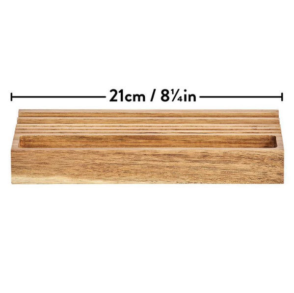 Akazienholz ist bekannt für seine warme Farbgebung und markante Maserung. Jeder Organizer ist dadurch ein echtes Unikat. Die glatte Oberfläche und die klaren Linien sorgen für eine hochwertige Haptik und ein aufgeräumtes Erscheinungsbild.