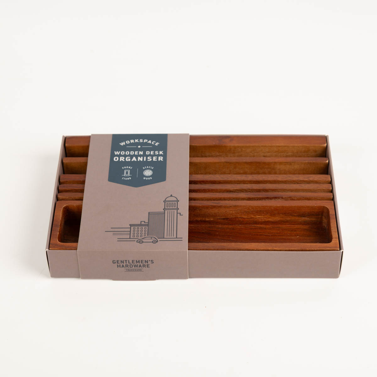 Der Schreibtischorganizer aus Holz von Gentlemen’s Hardware bringt klare Struktur auf deinen Arbeitsplatz. Gefertigt aus massivem Akazienholz, kombiniert er funktionale Aufbewahrung mit einem zeitlosen, maskulinen Design. Ideal für Büro, Homeoffice oder den Schreibtisch im Wohnbereich.