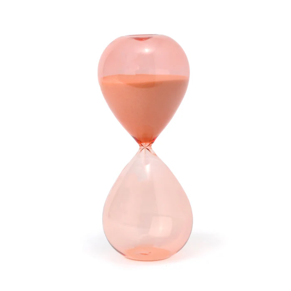Die Sanduhr Hourglass peachy ombre verbindet funktionales Zeitmessen mit moderner Ästhetik. Der sanfte Farbverlauf in warmen Pfirsichtönen macht sie zu einem dekorativen Highlight, das Ruhe ausstrahlt und gleichzeitig hilft, Zeit bewusst wahrzunehmen – ob bei der Arbeit, beim Lesen oder für kleine Auszeiten im Alltag.