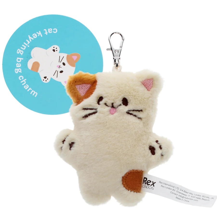 Flauschiger Schlüsselanhänger von Rex London in Form einer niedlichen Katze mit cremefarbenem Fell und markantem braunem Ohr