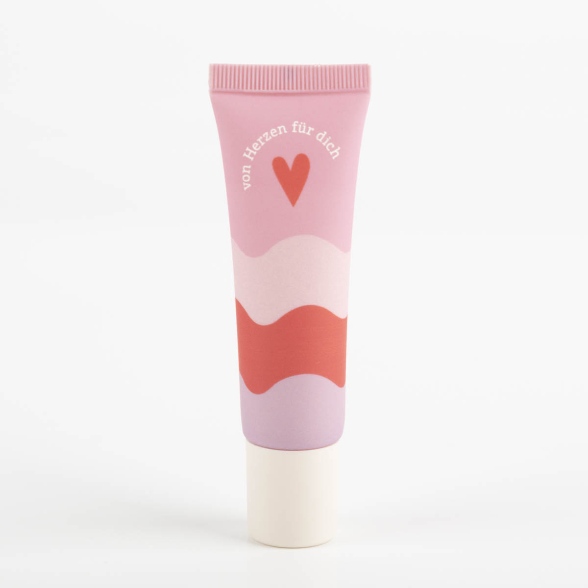 Design: Hochwertige Tube mit Aufschrift „von Herzen für dich“