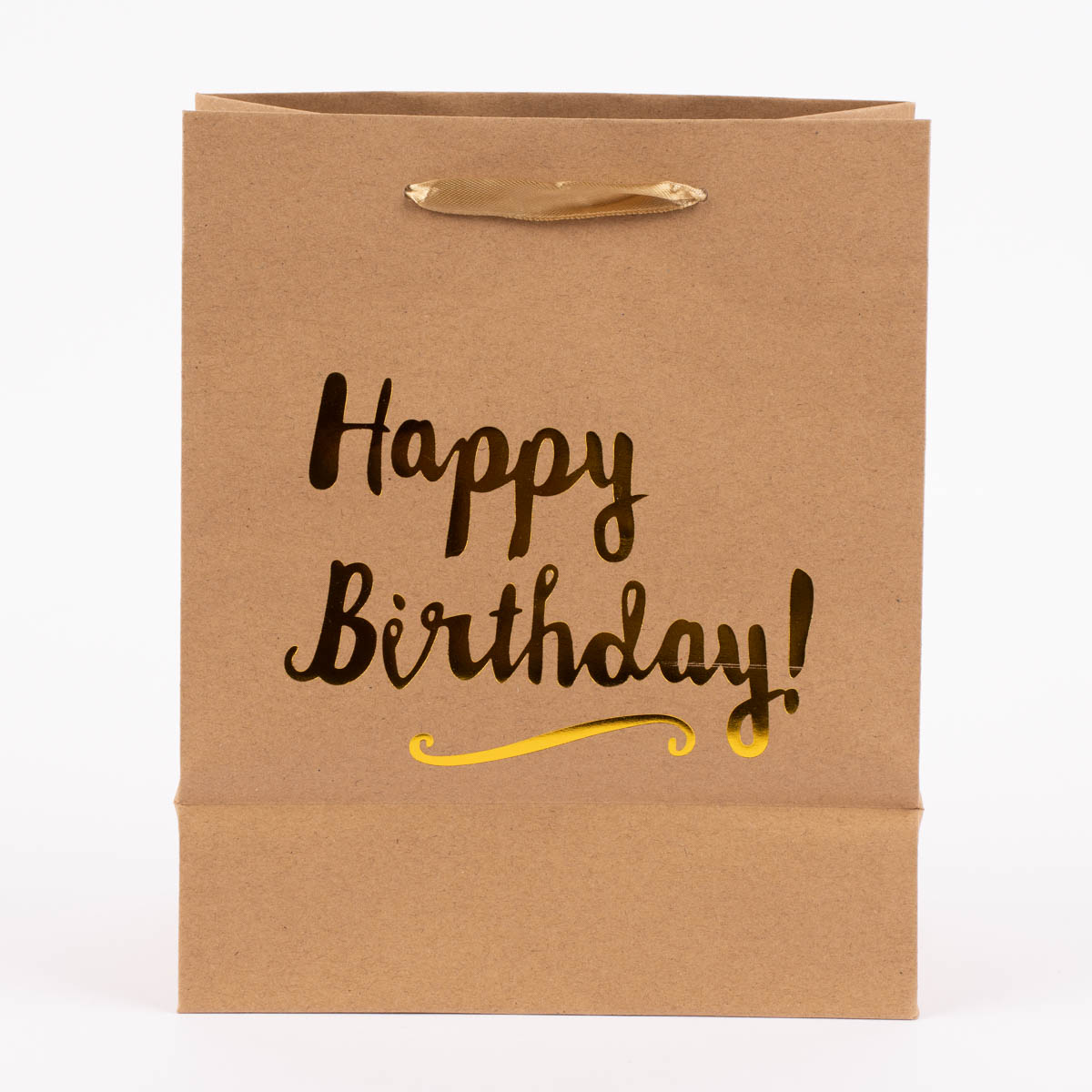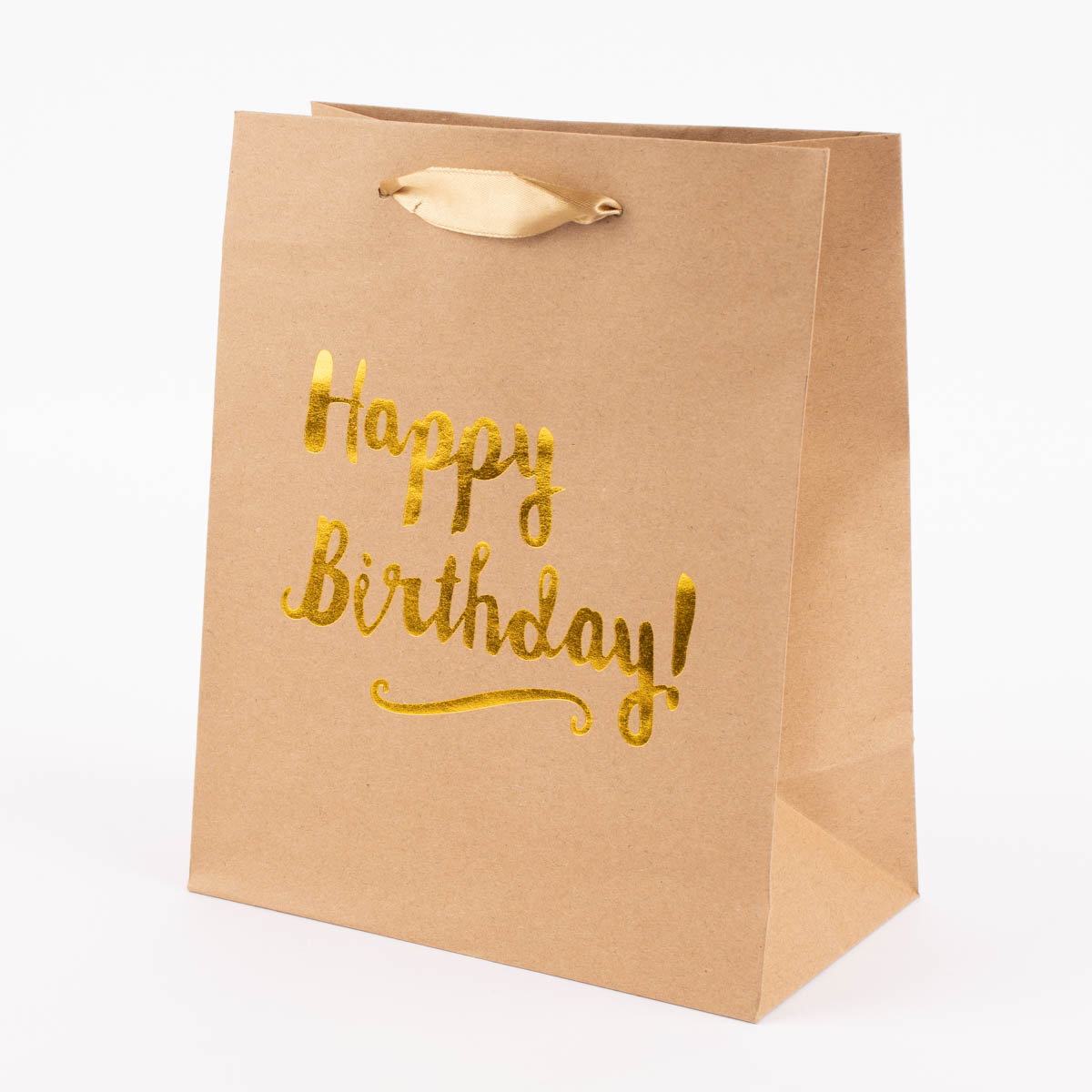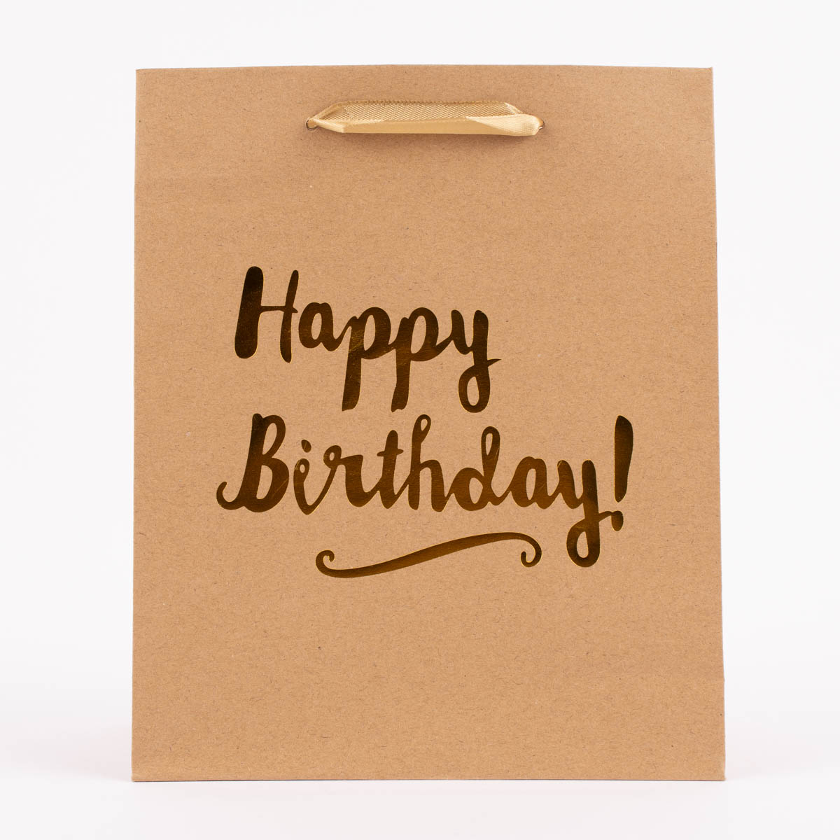 Geschenktüte Happy Birthday! Kraftpapier Größe L braun goldfarbig 27x33x14cm