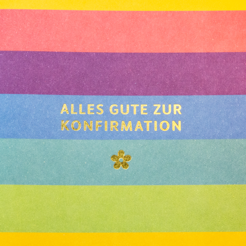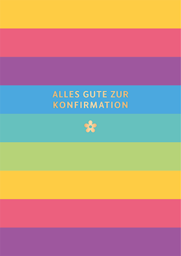 Diese stilvolle Doppelkarte zur Konfirmation von Grafik Werkstatt überzeugt durch ihr modernes und fröhliches Streifen-Design. Die harmonisch abgestimmten Farben verleihen der Karte eine lebendige und zugleich elegante Ausstrahlung.