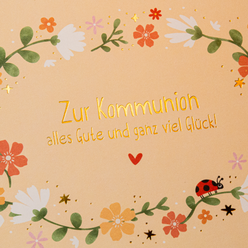 - Text: „Zur Kommunion alles Gute und ganz viel Glück!“