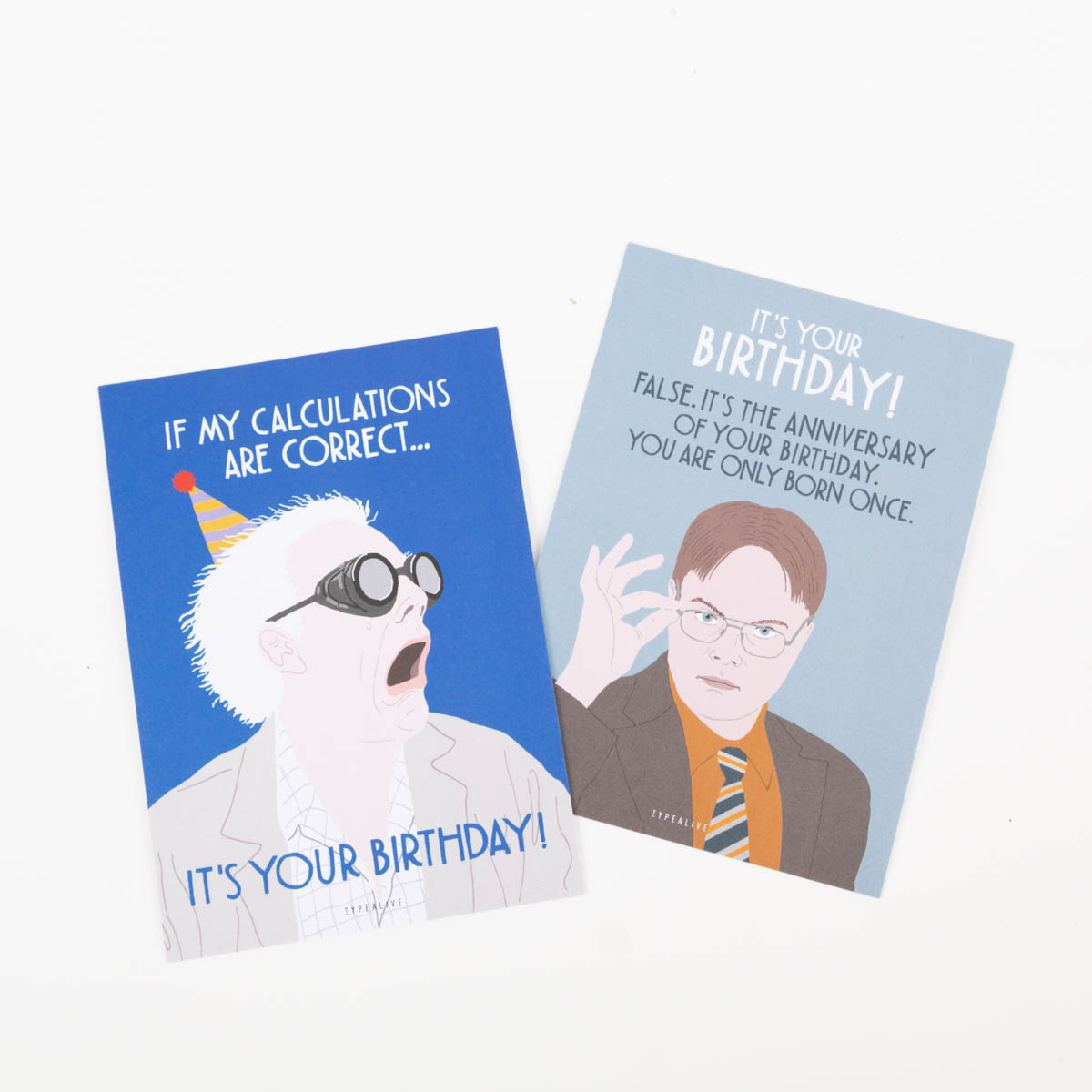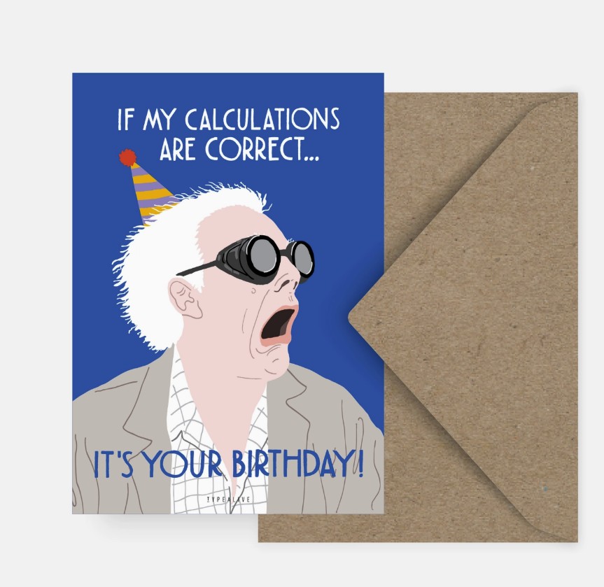 Was für eine originelle Karte von typalive! Die Vorderseite aus dem Filmklassiker mit der Aufschrift "If my calculations are correct...It´s your Birthday ist ein Retro-Hingucker in Blau !