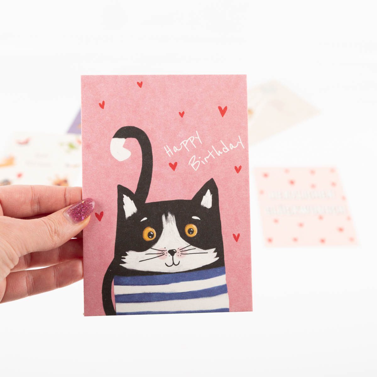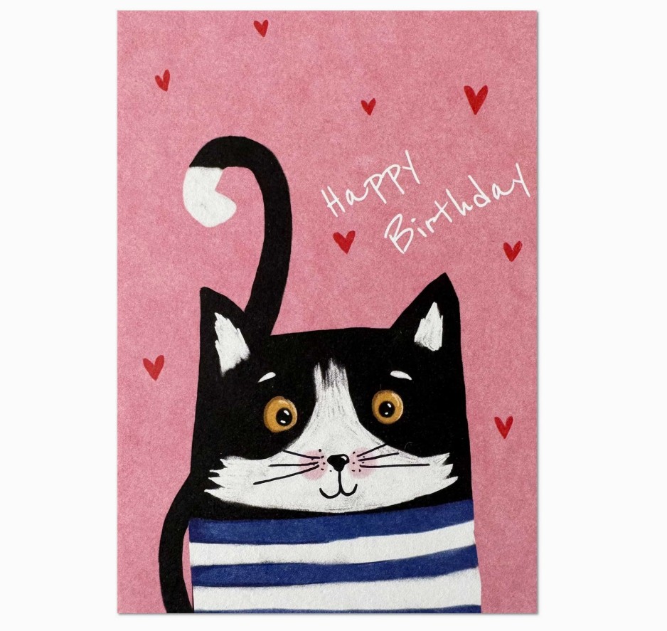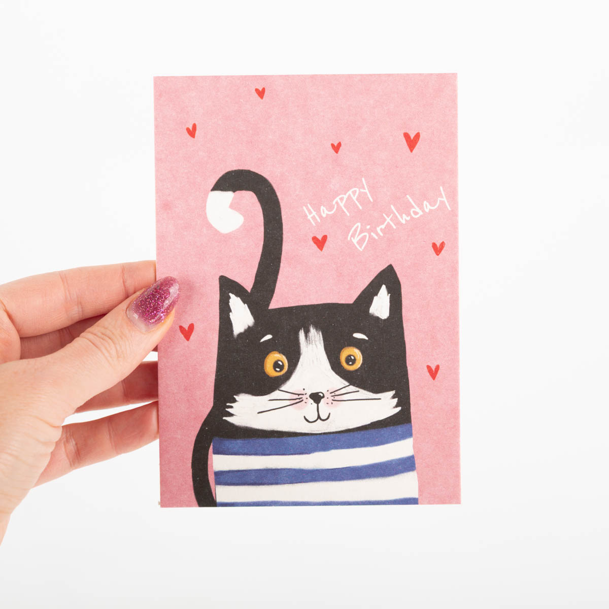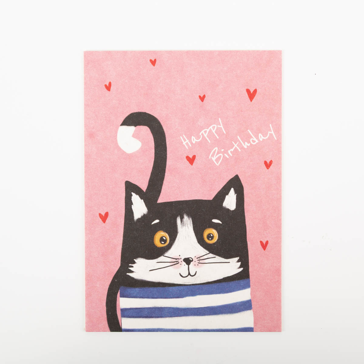Postkarte Happy Birthday A6 Grußkarte mit Katze von KEITCARDS