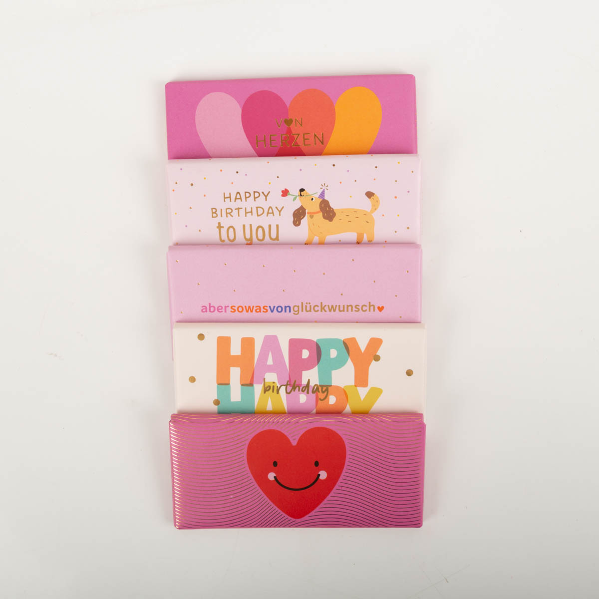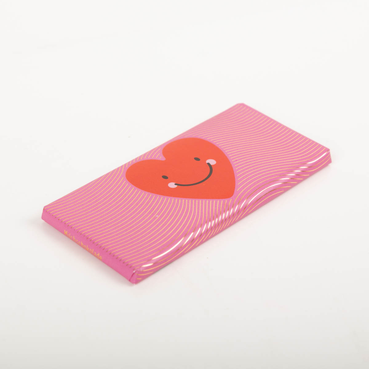 HERZLICHE AUFMERKSAMKEIT: Mini-Schokotafel mit lachendem Herzmotiv in Pink – ideal als kleiner Gruß, Dankeschön oder Geschenkbeilage