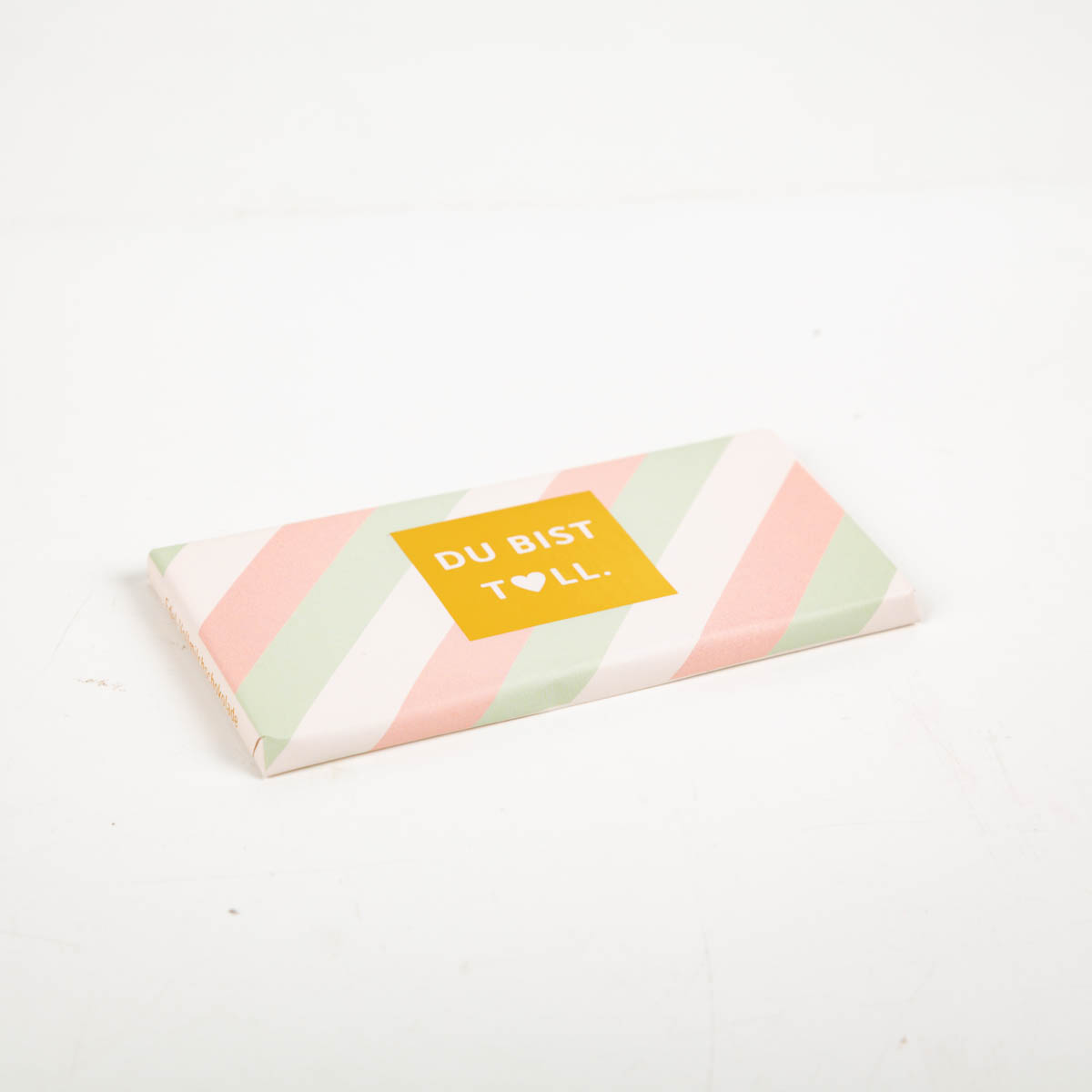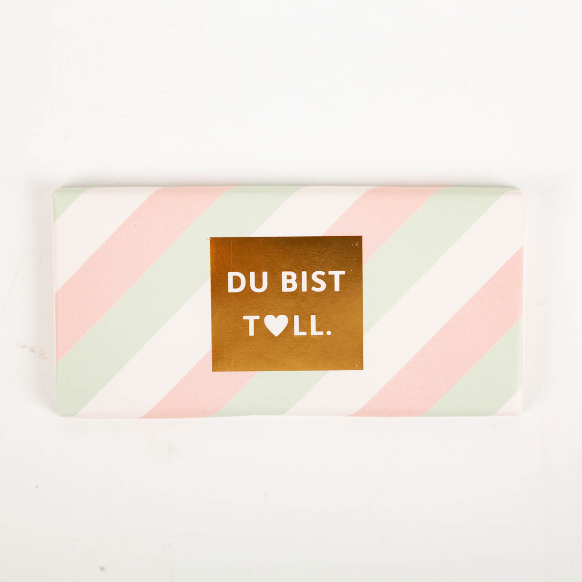 Manchmal braucht es nicht viele Worte – nur eine klare Botschaft: DU BIST TOLL. Diese Schokotafel von Grafik Werkstatt ist die perfekte kleine Aufmerksamkeit für liebe Menschen. Ob als Dankeschön, Motivationskick oder einfach so – das edle Design mit pastellfarbenen Streifen und glänzender Goldveredelung sorgt für ein echtes Highlight.