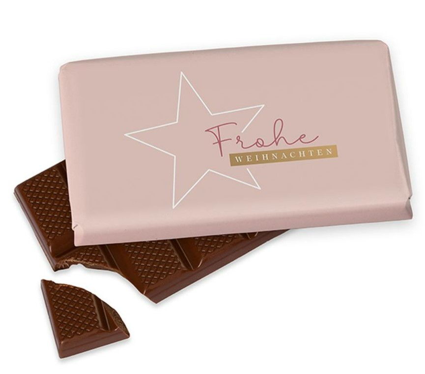 Kleine Schokolade Vollmilch Frohe Weihnachten Stern rosa 40g von La Vida