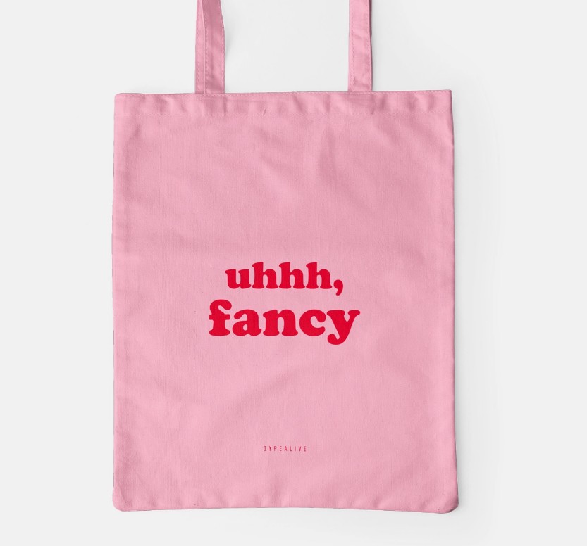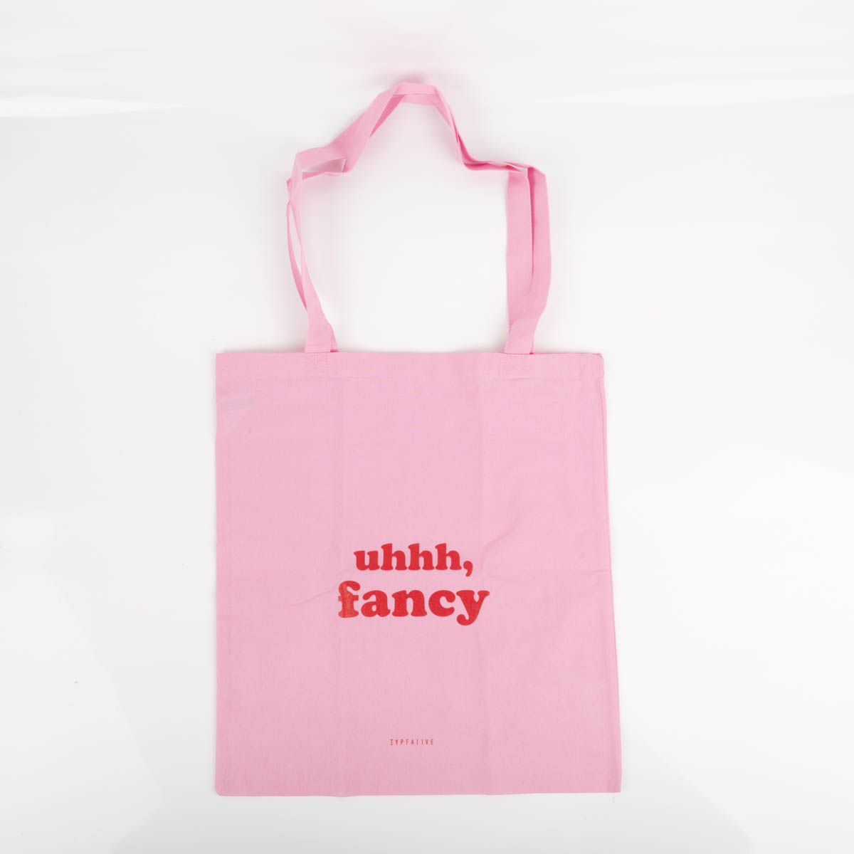 Stoffbeutel Baumwolltasche rosa mit Aufdruck „uhhh, fancy“ – Typalive