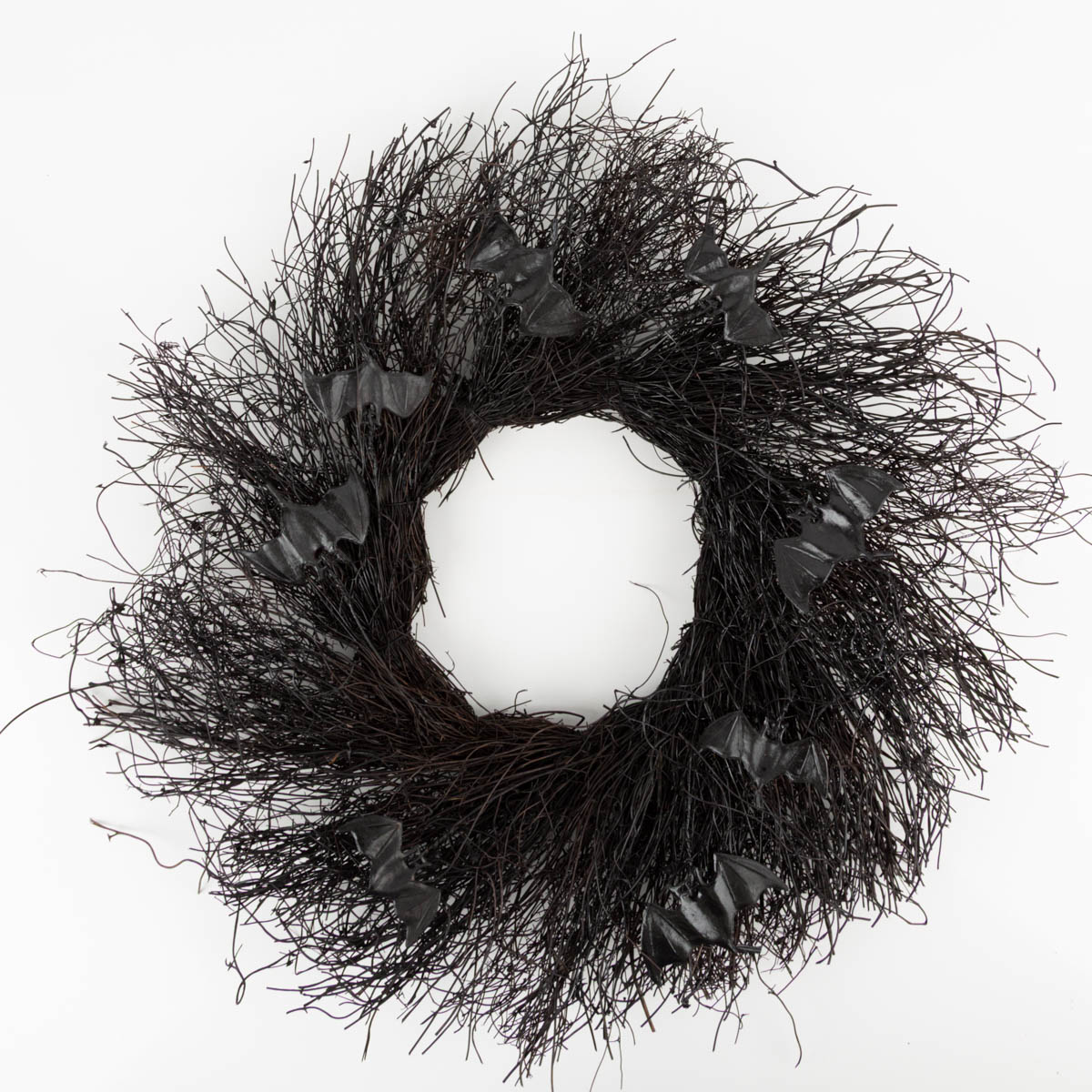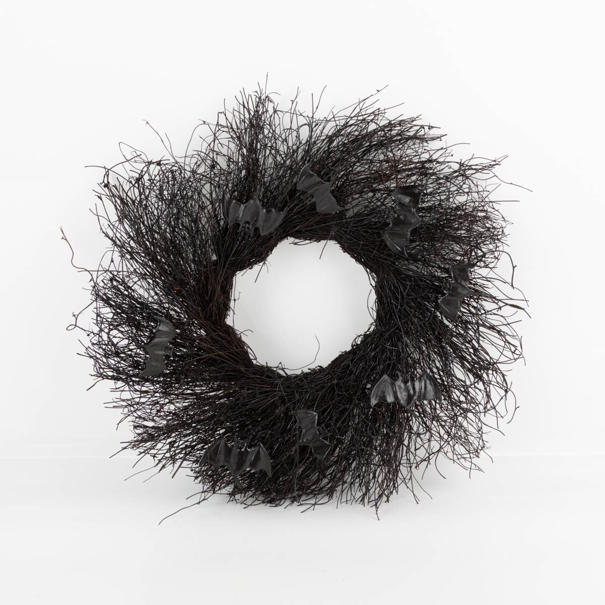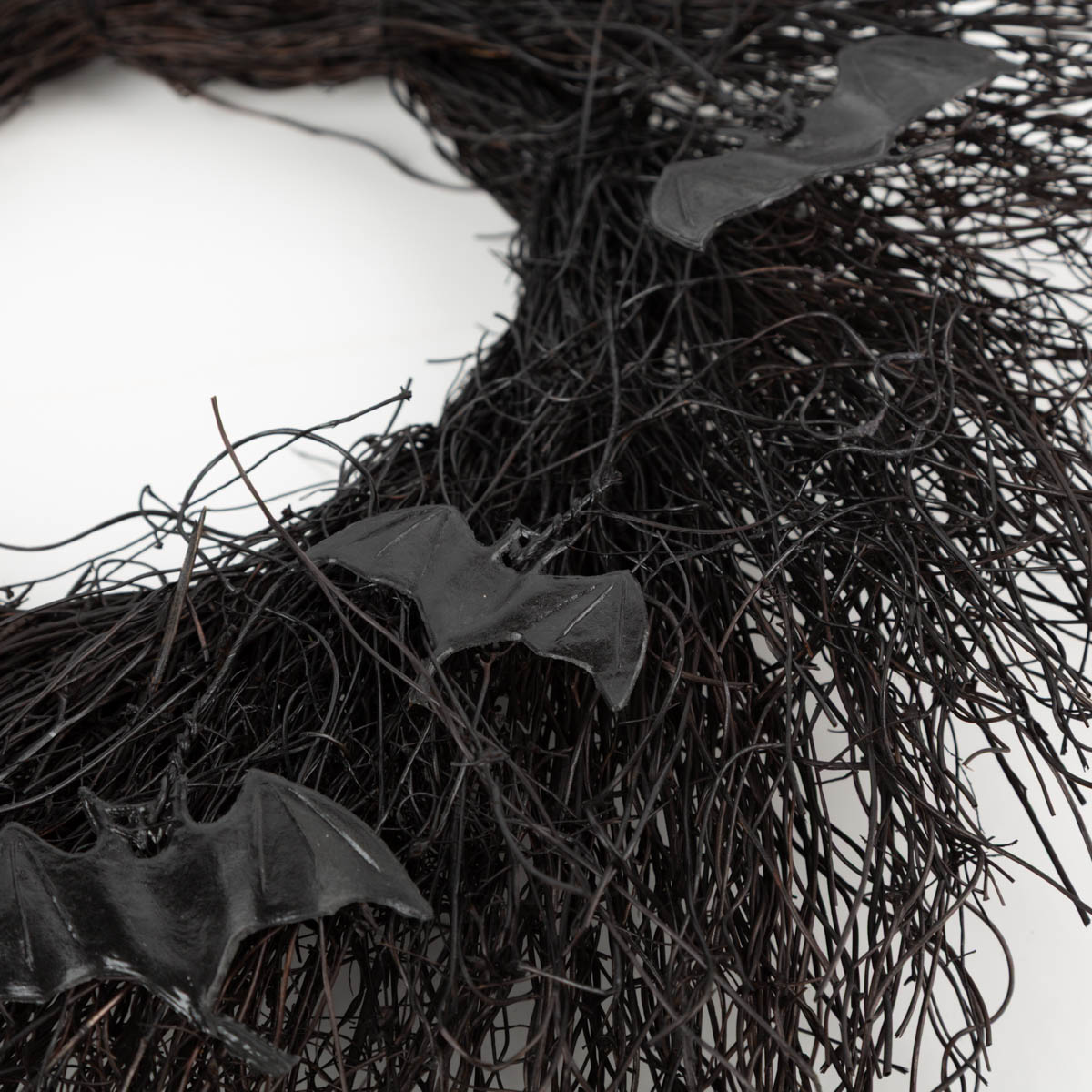 Der handgearbeitete Kranz besteht aus Rattan und Kunststoff, kombiniert Naturlook mit düsterer Fledermaus-Optik. Mit einem Durchmesser von 57cm und einer Höhe von 7cm ist er ein echter Blickfang – egal ob an der Haustür, an der Wand oder im Fenster.