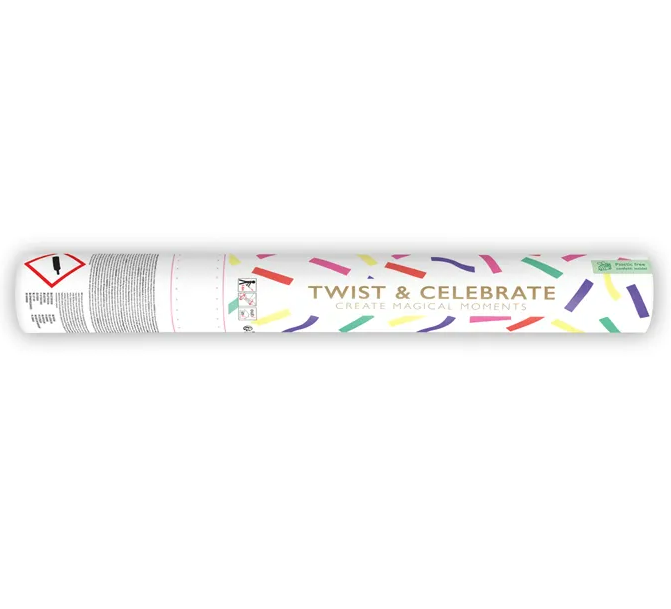 Diese Konfettikanone mit bunten Papierstreifen sorgt sofort für gute Laune und lebendige Partymomente. Mit einer Länge von 39 cm schießt sie farbenfrohe Papierkonfetti-Streifen schwungvoll in die Luft und schafft eine fröhliche, dynamische Atmosphäre – perfekt für Feiern aller Art.