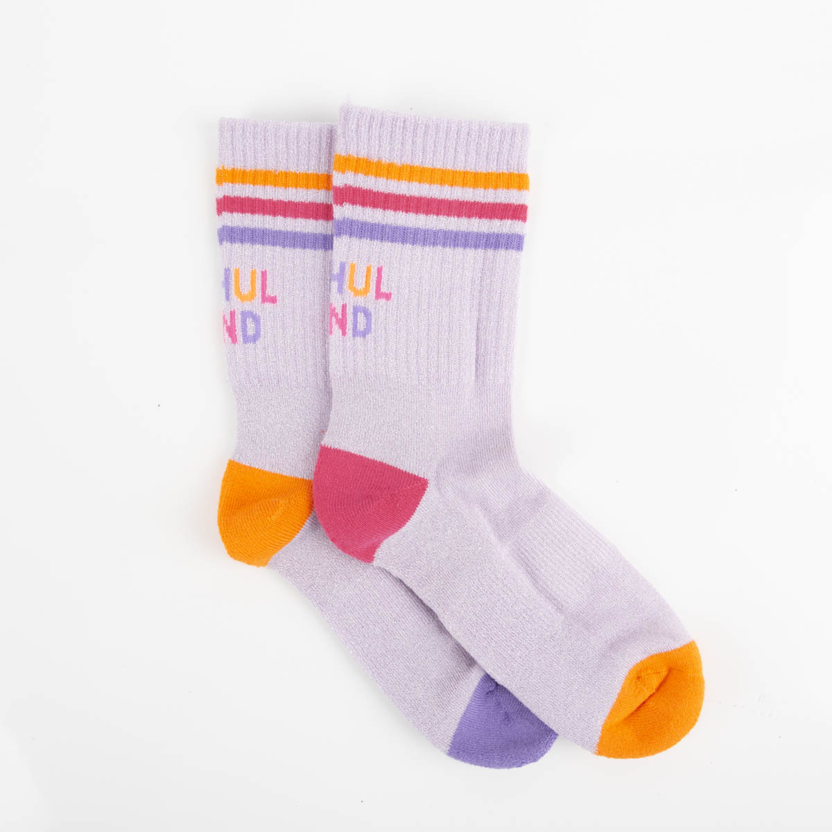 Kindersocken Schulkind Gr 26-32 mit Glitzergarn violett von Grafik Werkstatt