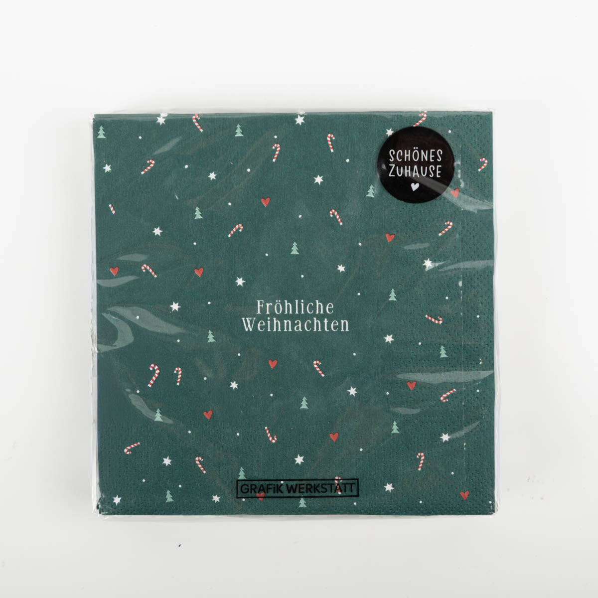 Servietten klein "Fröhliche Weihnachten" grün 25x25cm 3lagig 20 Stück von Grafik Werkstatt