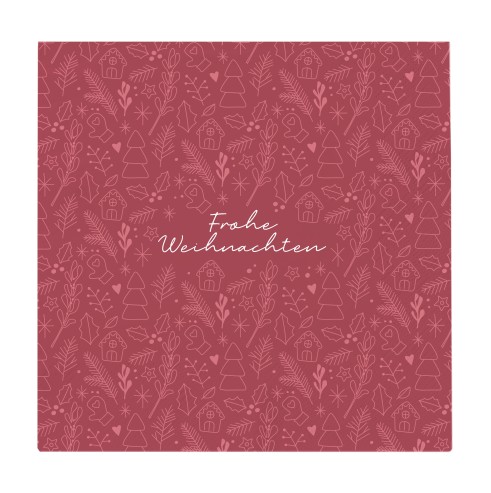 Mit diesen roten Weihnachtsservietten von Grafik Werkstatt deckst du deine Festtafel stilvoll und nachhaltig. Das feine Allover-Weihnachtsmuster mit dem weißen Handschrift-Schriftzug „Frohe Weihnachten“ wirkt modern und festlich zugleich – perfekt für Adventskaffee, Heiligabend oder die Weihnachtsfeier im Büro.