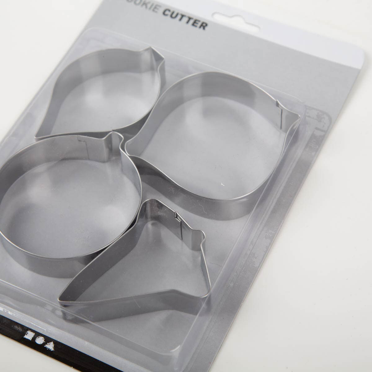Set-Inhalt: 4 Ausstechformen (Glocke, Kugel, Prisma, Tropfen)