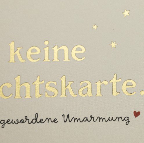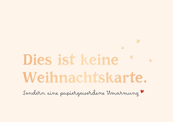 Aufschrift: Dies ist keine Weihnachtskarte. Sondern eine papiergewordene Umarmung