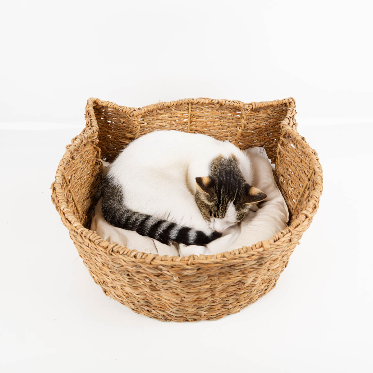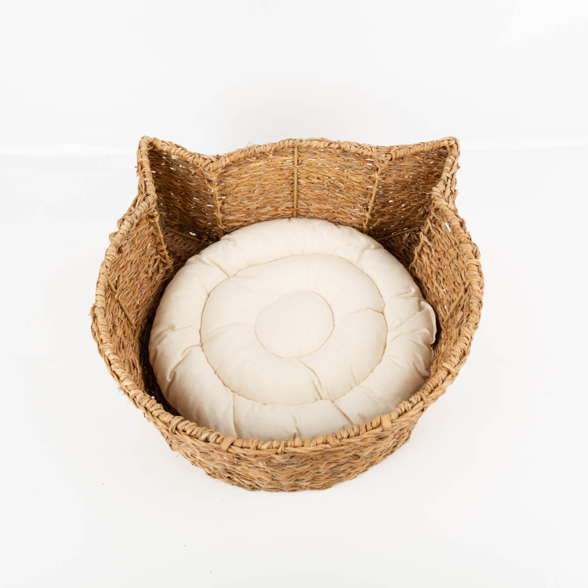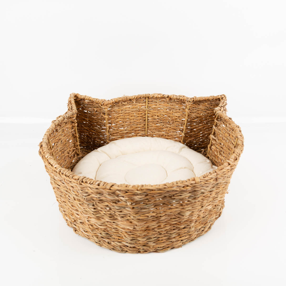 Du suchst einen gemütlichen Schlafplatz für deine Katze? Dieser handgewebte Korb aus Naturfasern bietet mit seinem hohen Rand Sicherheit und Geborgenheit. Das weiche Kissen ist herausnehmbar – perfekt zum Lüften und Reinigen. Dank der Ohrenform wirkt der Korb charmant und passt in viele Wohnstile.