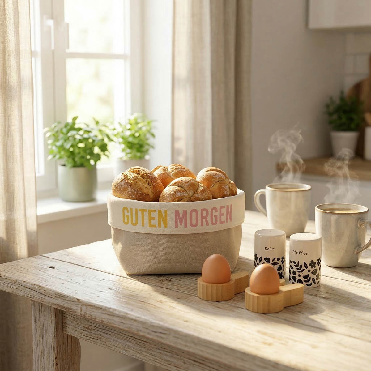 Stoff-Körbchen „Guten Morgen“: Brotkorb und Ordnungshelfer in einem
