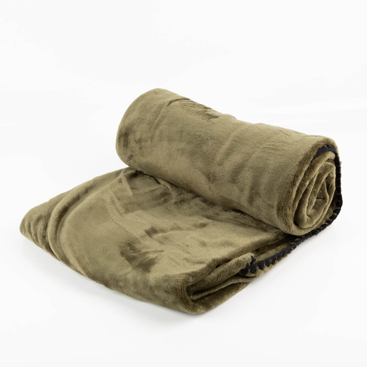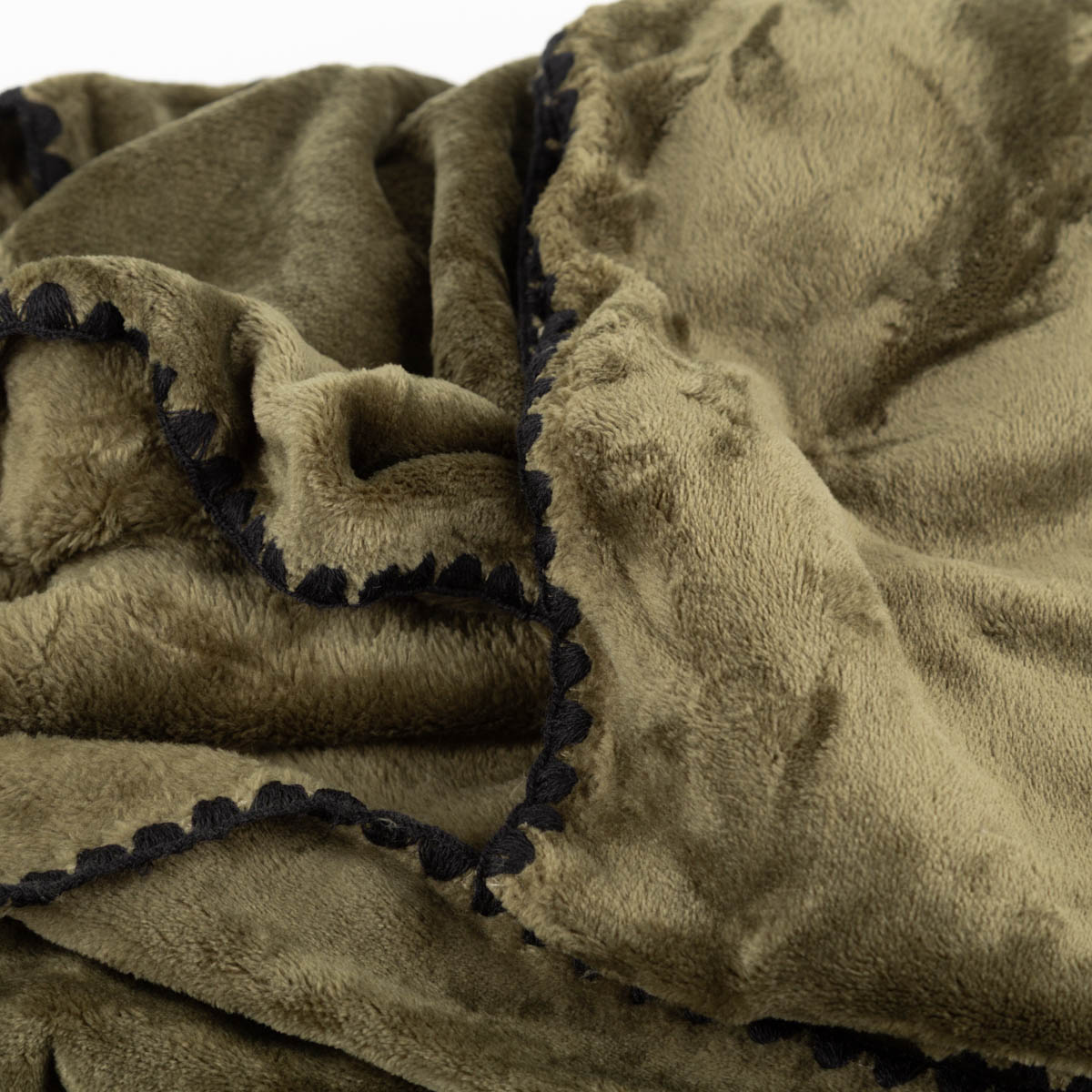 Superflauschige Kuscheldecke in Winter Greenmit schwarzem Kettelrand