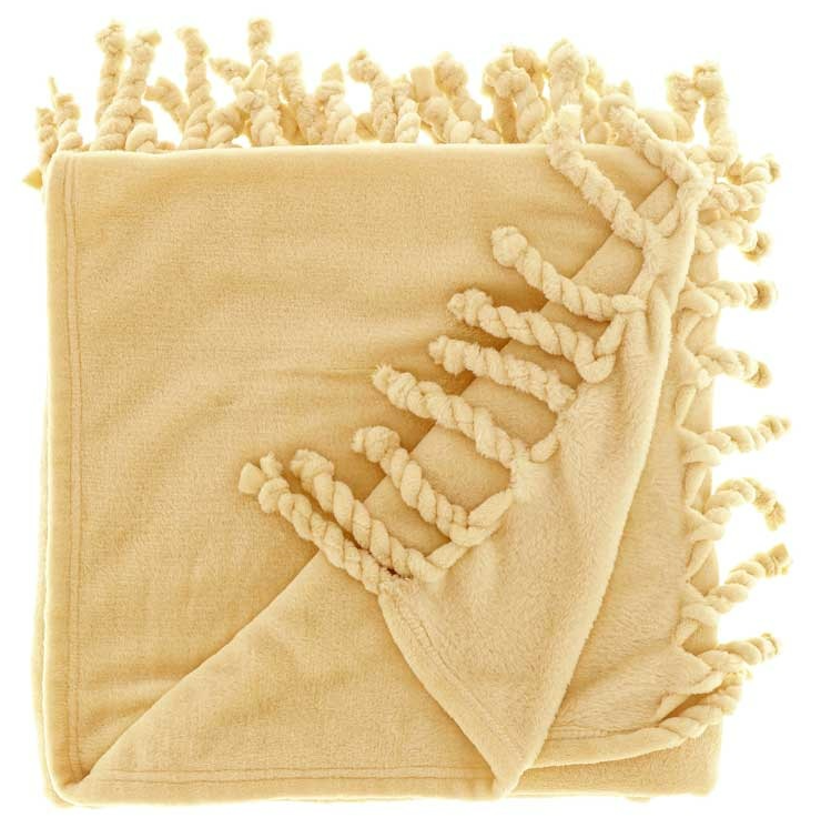 Sanfte Wohlfühlmomente: Kuscheldecke mit gedrehten Fransen in Hellgelb