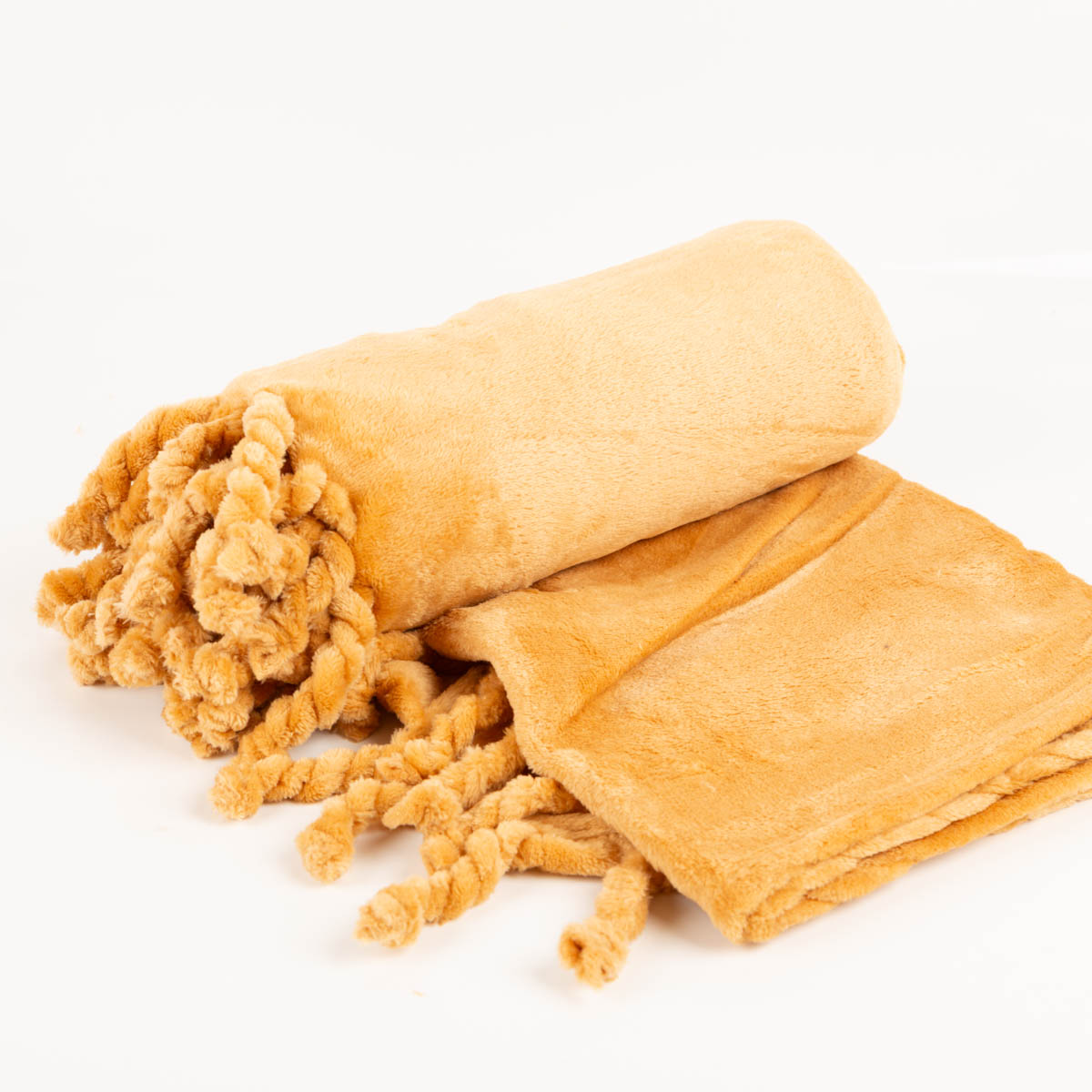 Kuscheldecke mit gedrehten Fransen Ocker 140x160cm