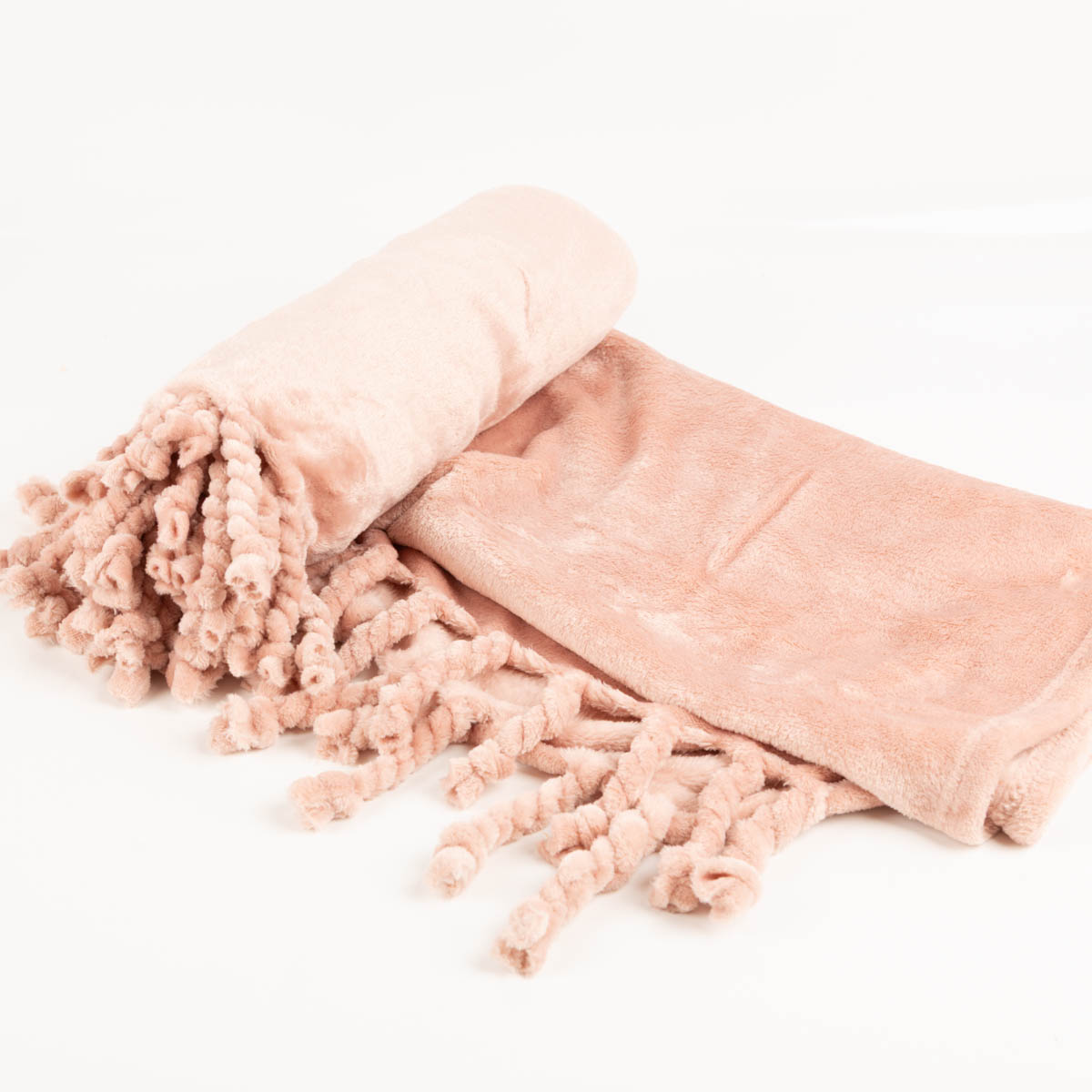 Kuscheldecke mit gedrehten Fransen Old Pink 140x160cm
