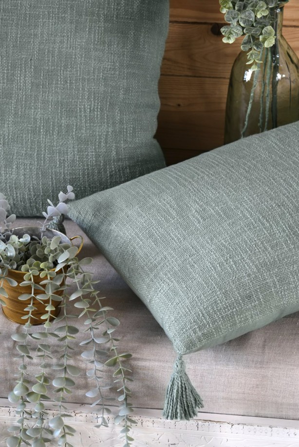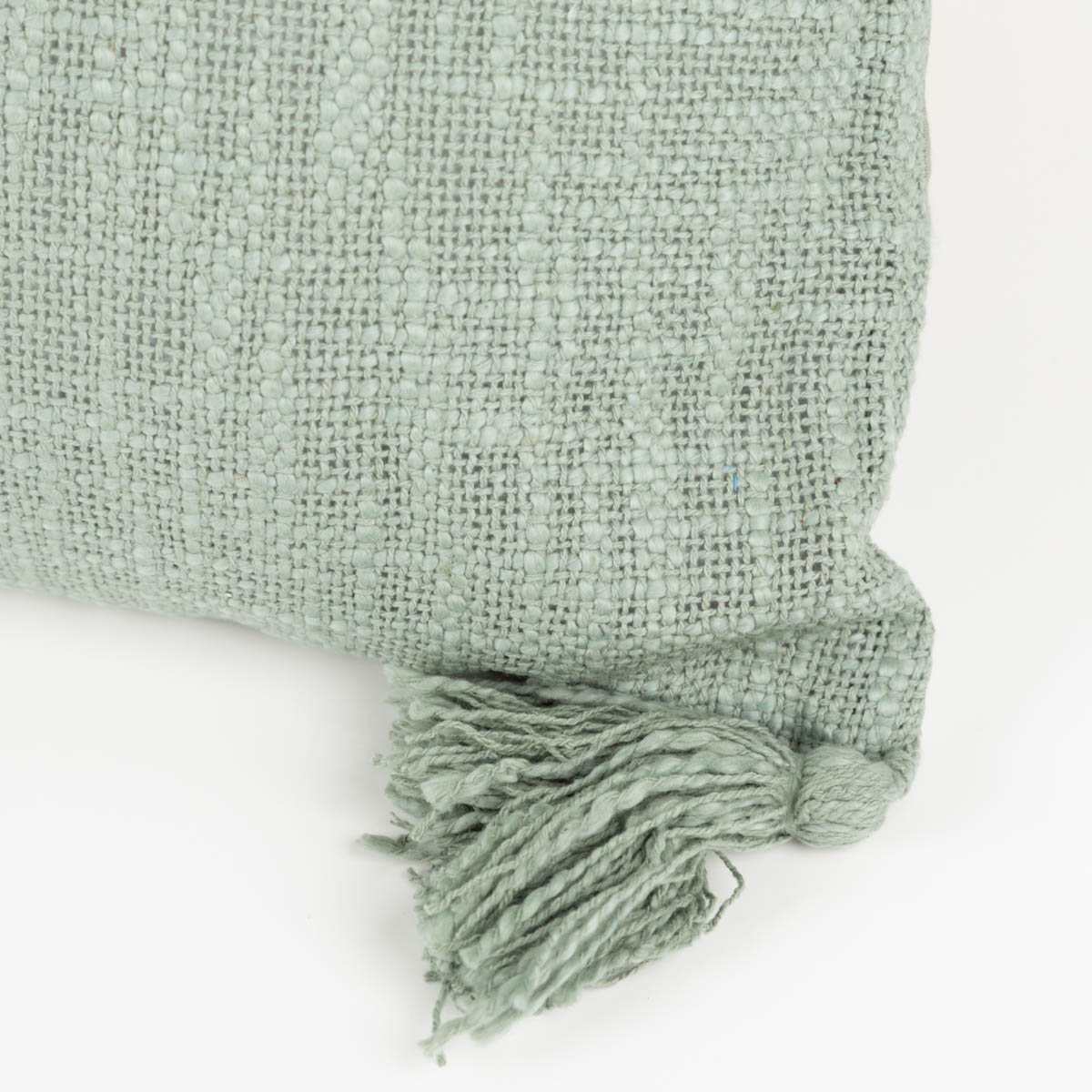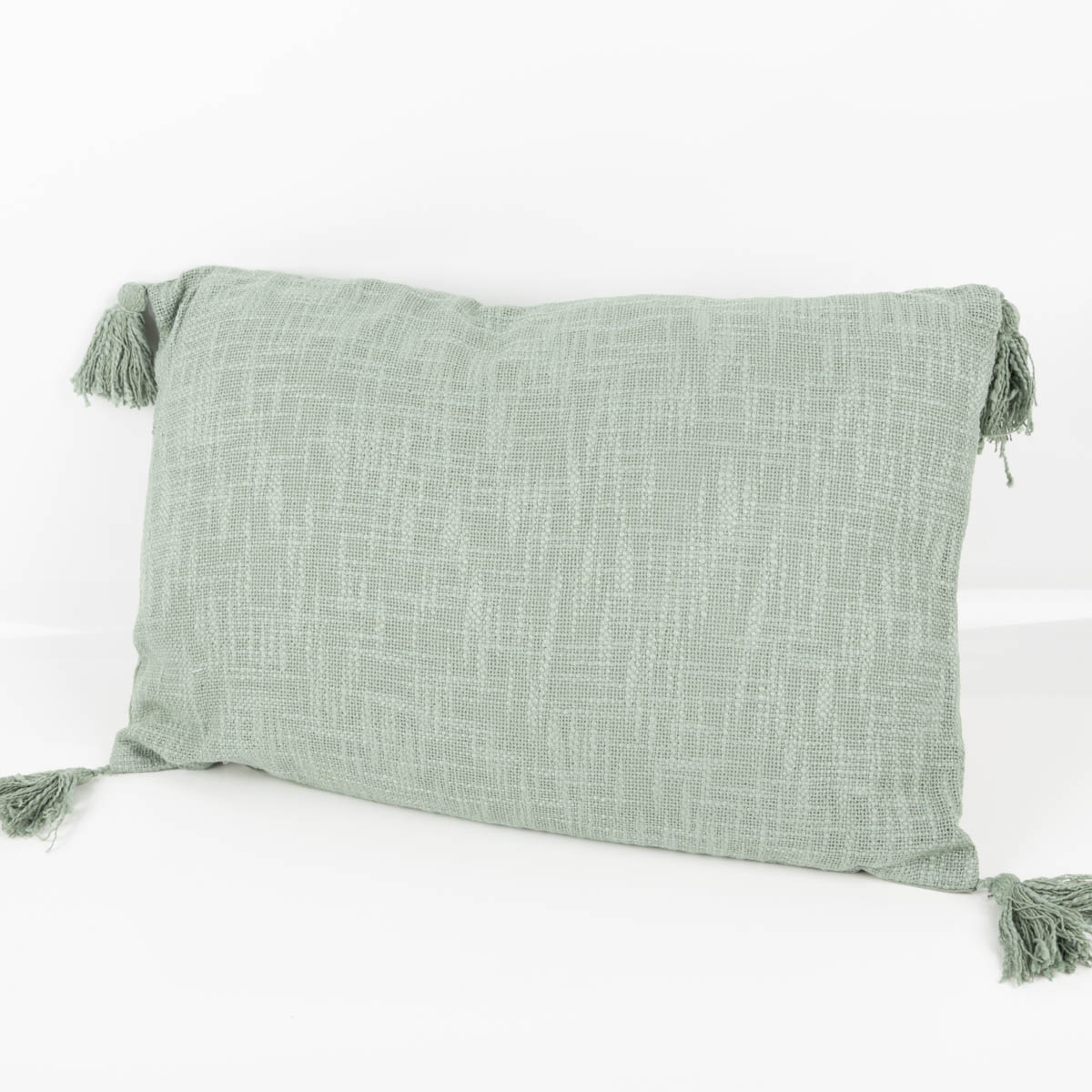 Kissen 40x60cm grün – mit rustikaler Struktur und Quasten