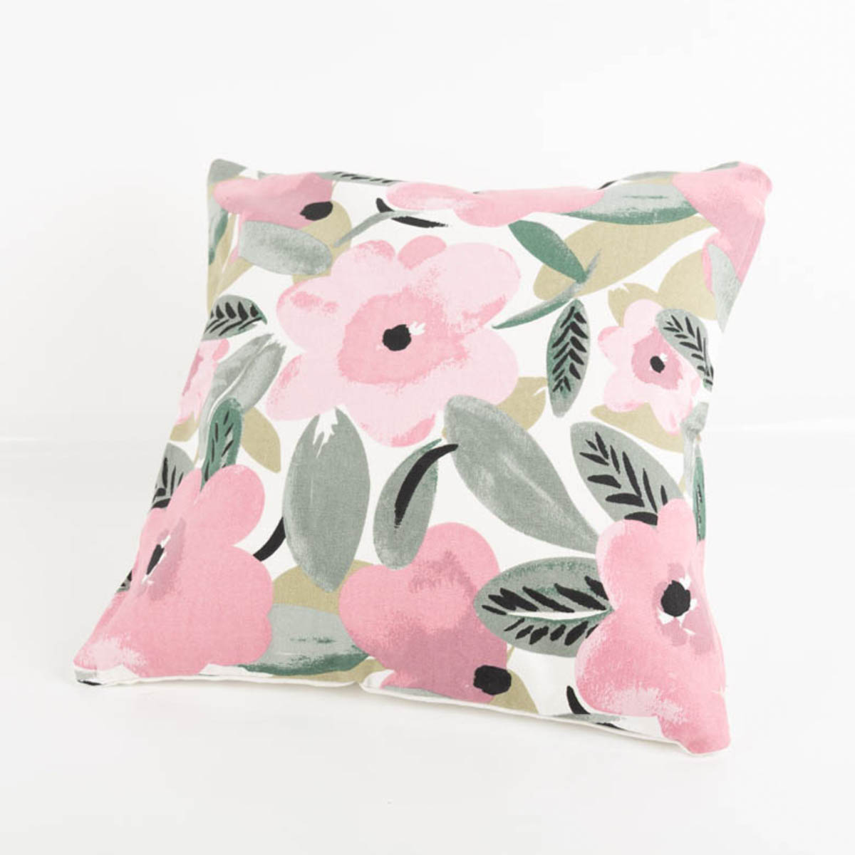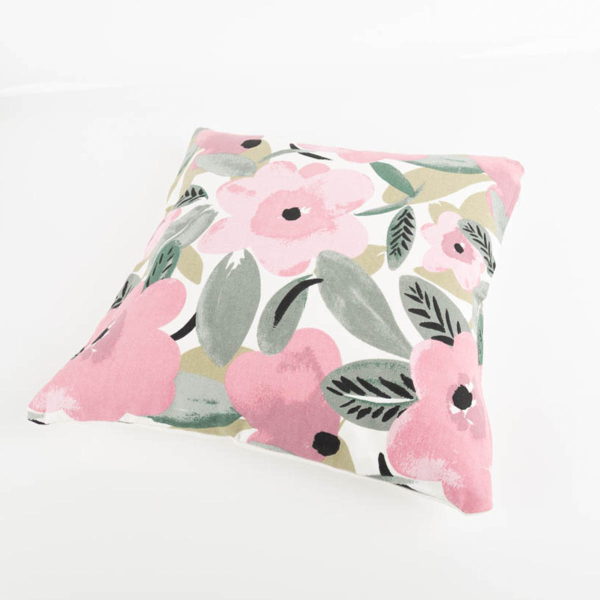 Kissenhülle Canvas mit Blumen in Rosa 40x40 cm – Sommerliches Dekokissen mit floralem Print
