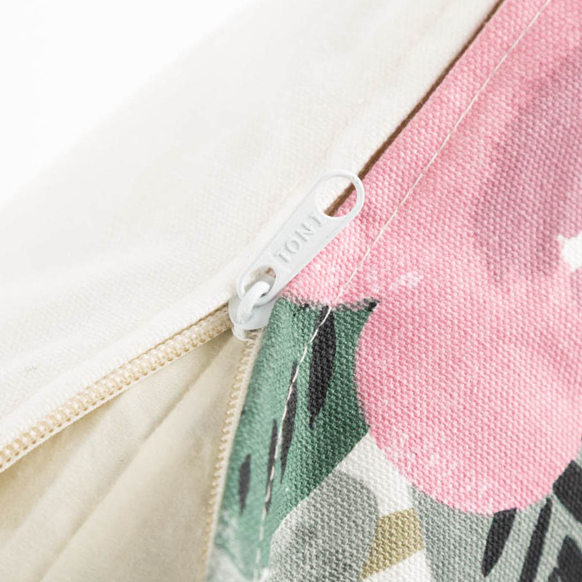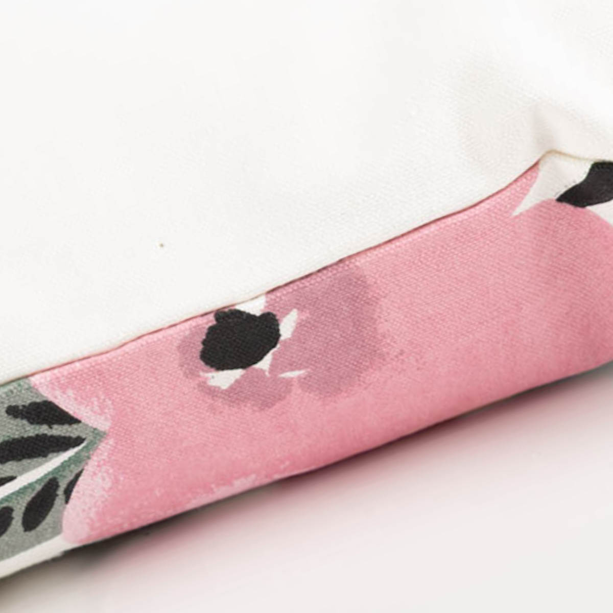 Setze frische Akzente mit der Kissenhülle Canvas mit sommerlichem Blumendessin auf der Vorderseite! Das stilvolle Muster aus rosafarbigen Blüten und grünen Blättern auf einem weißen Untergrund verleiht deinem Zuhause eine fröhliche, leichte Atmosphäre. Die Rückseite in Uni-Weiß sorgt für eine dezente Alternative, sodass du die Kissenhülle je nach Stimmung oder Einrichtung flexibel einsetzen kannst. Gefertigt aus robuster Canvas-Baumwolle, überzeugt diese Kissenhülle nicht nur durch ihr Design, sondern auch durch ihre Langlebigkeit und Pflegeleichtigkeit.