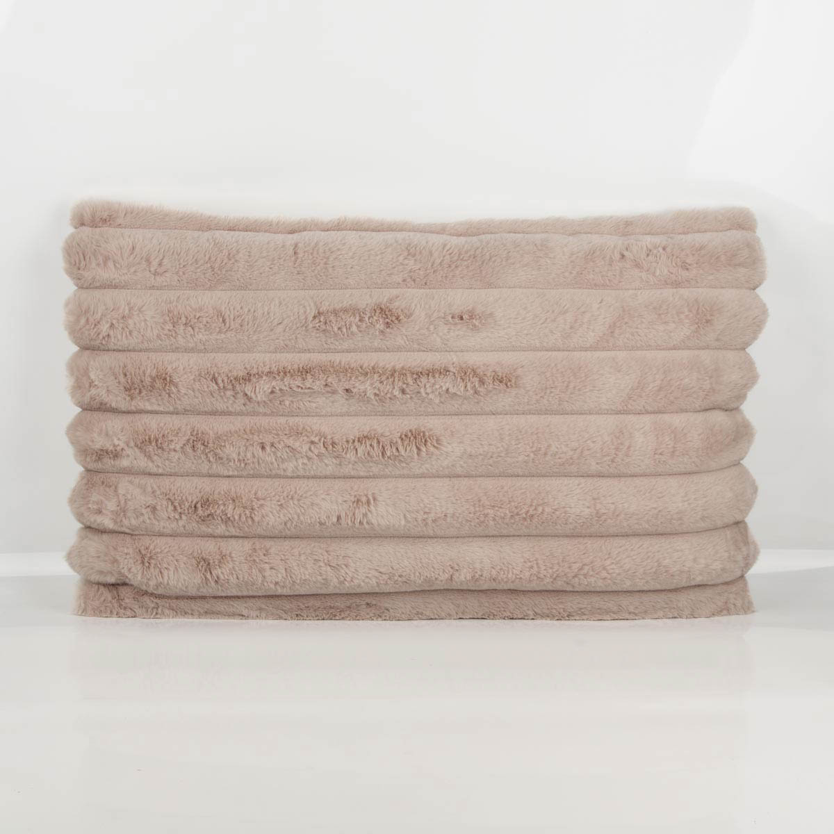 Kuschelkissen XL aus Plüschfell mit Streifen in ecru – 50x80 cm
